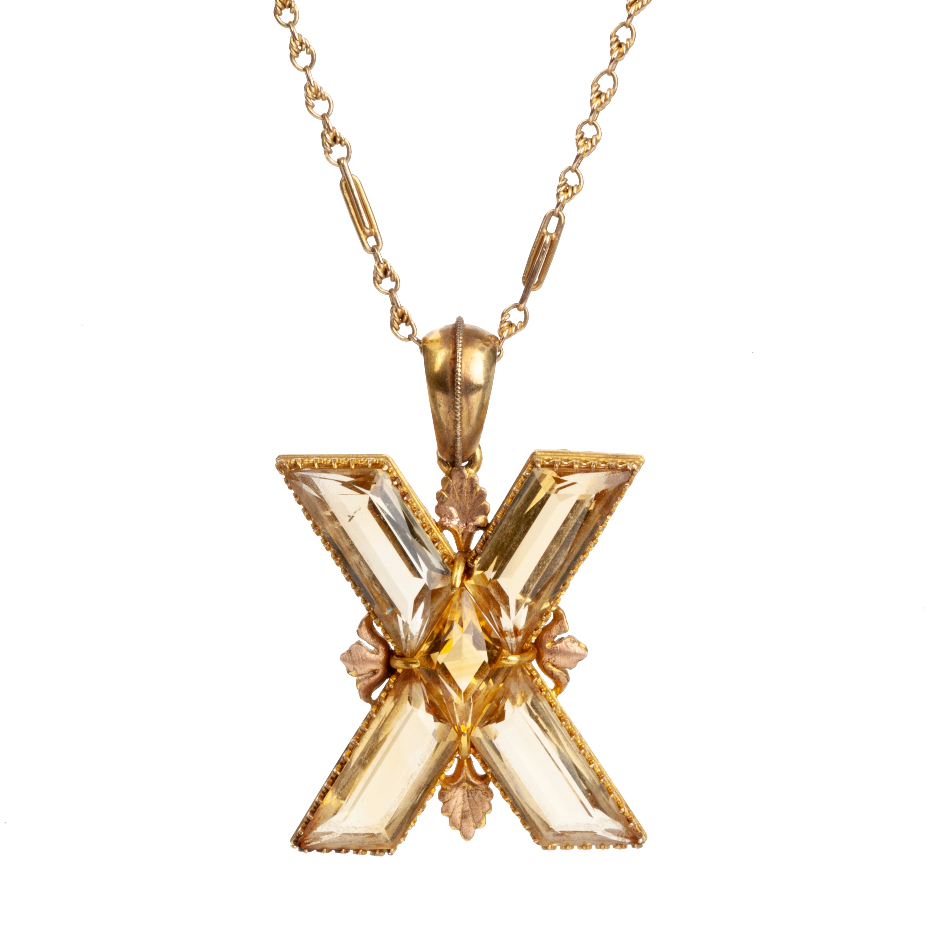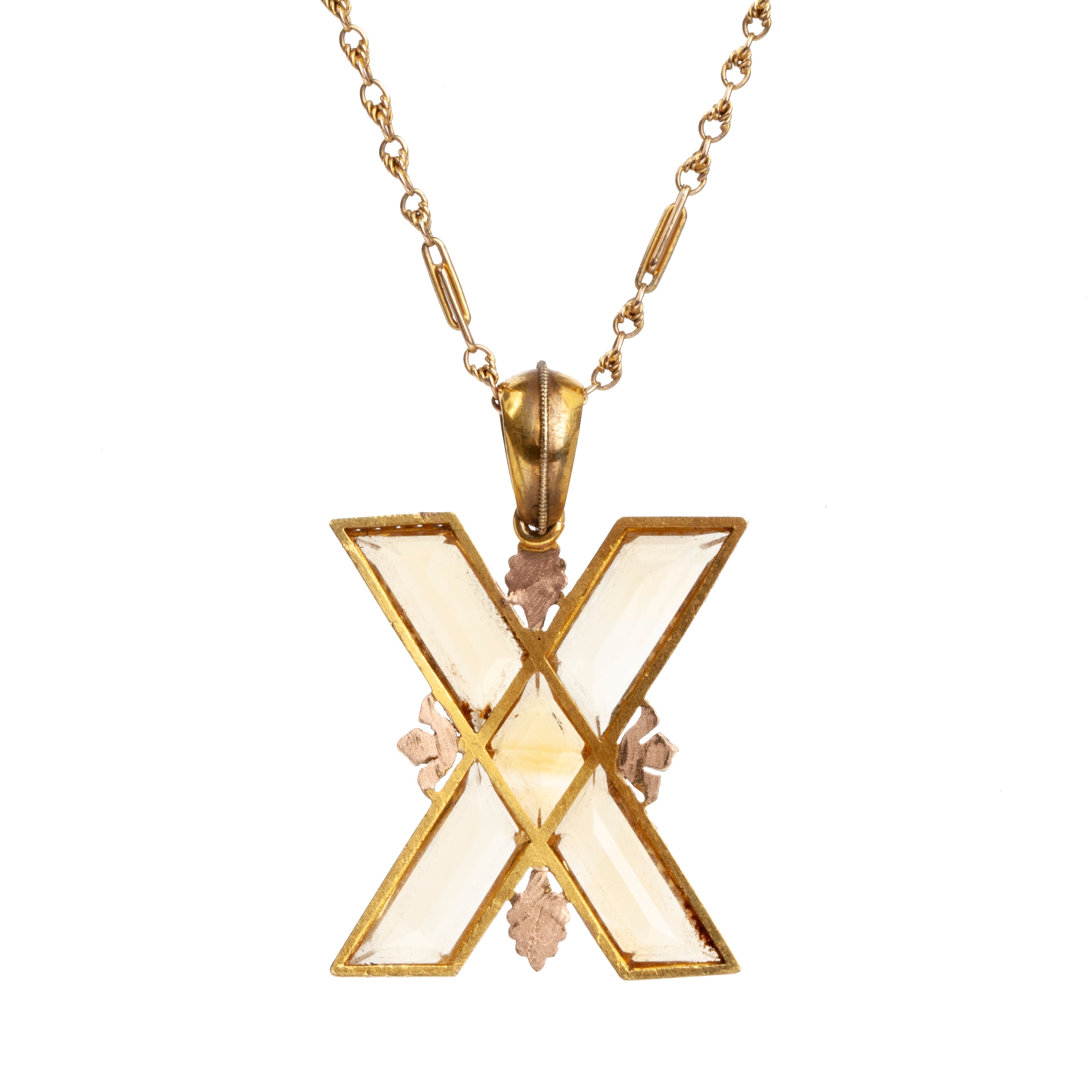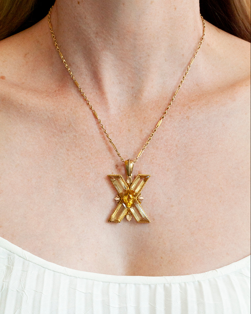 19th Century faceted citrine st. Andrew's cross pendant. Set in high carat gold with rose gold details. Scottish. Circa 1870