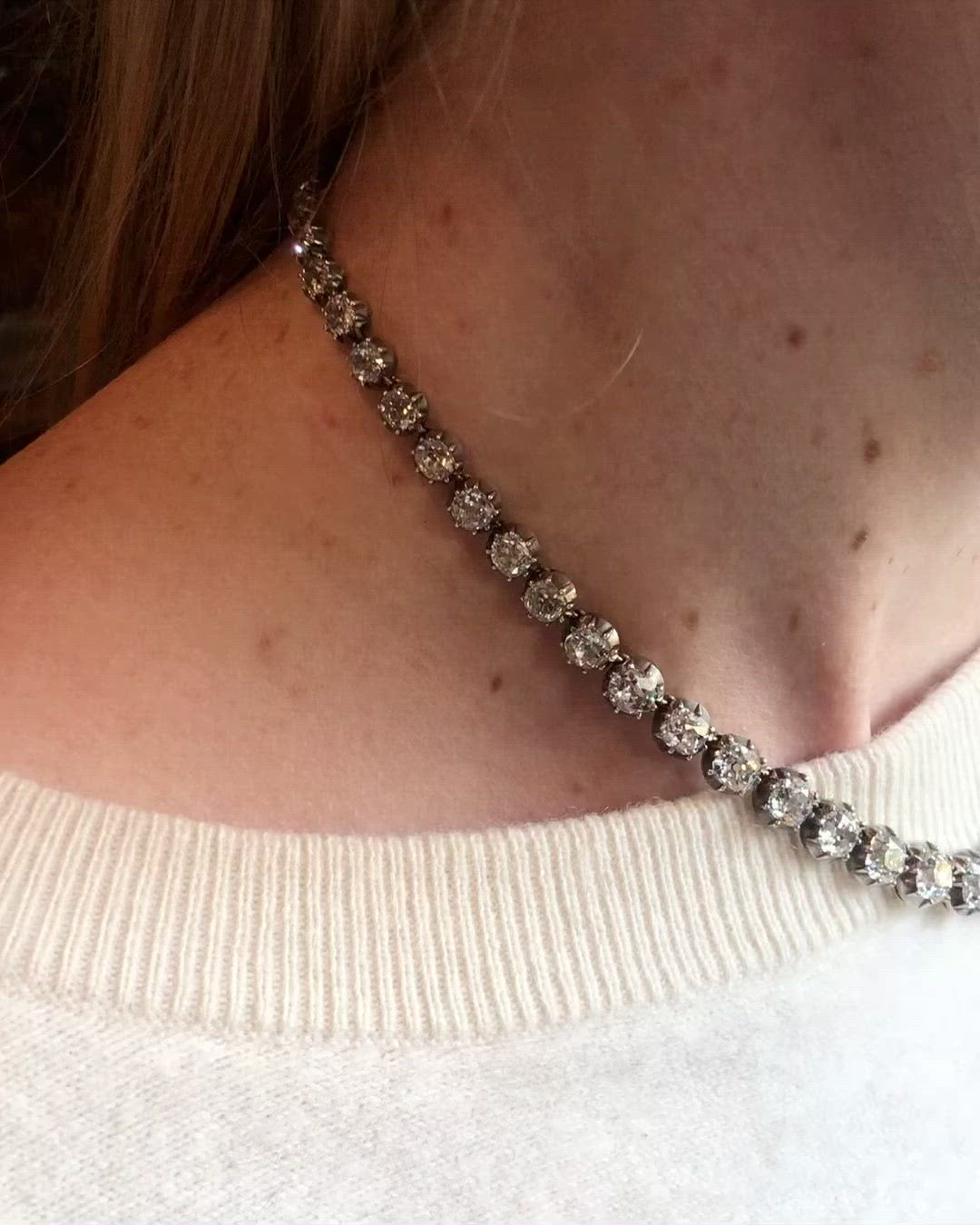 19th Century Old Mine Cut Diamond Riviere Necklace