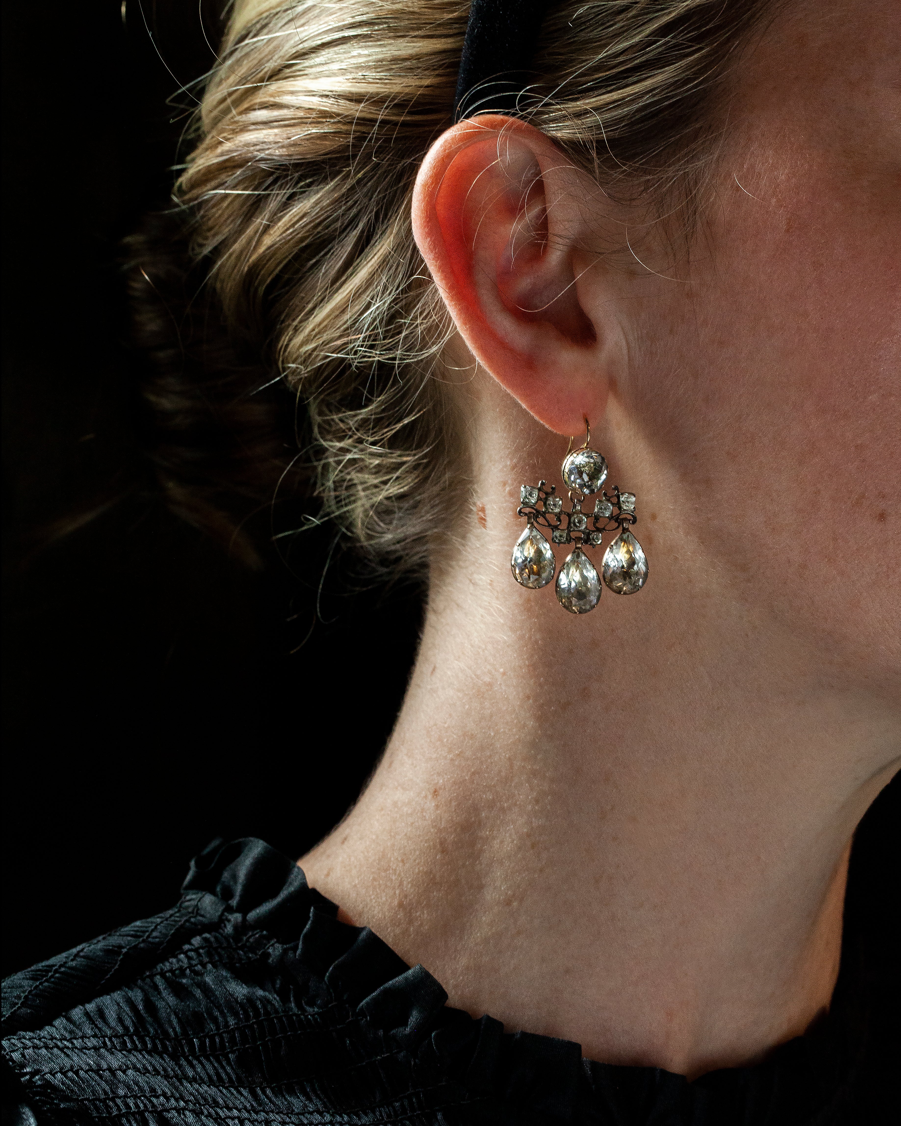 Paste stones are made from highly refractive leaded glass but paste jewels were not considered counterfeit jewelry. It was made to achieve certain decorative effects which were rarely realized with diamonds and other precious stones. In the absence of the high cost of materials, paste artisan skill's were often developed and extended much further than those of diamond workers. It is said at its peak of popularity, in Paris alone there were 300 jewelers specializing in paste Jewels.. At its best, antique paste is to be compared only with the finest jewelry for sheer artistry and craftsmanship.