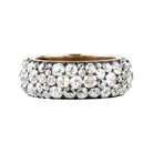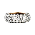 A modern interpretation of an antique technique, this domed diamond band features a cobblestone pavé surface. Each of the 108 irregularly shaped diamonds carries its own subtle character, a trace of the human hand that first shaped it over 100 years ago. Each reclaimed stone is set in silver-topped gold to enhance their natural sparkle, the stones form a surface with texture and shifting light. Though the arrangement appears spontaneous, it reflects over one hundred hours of meticulous setting work. This band is a study in patience. Collectively, the stones weigh approximately 6.5 carats.