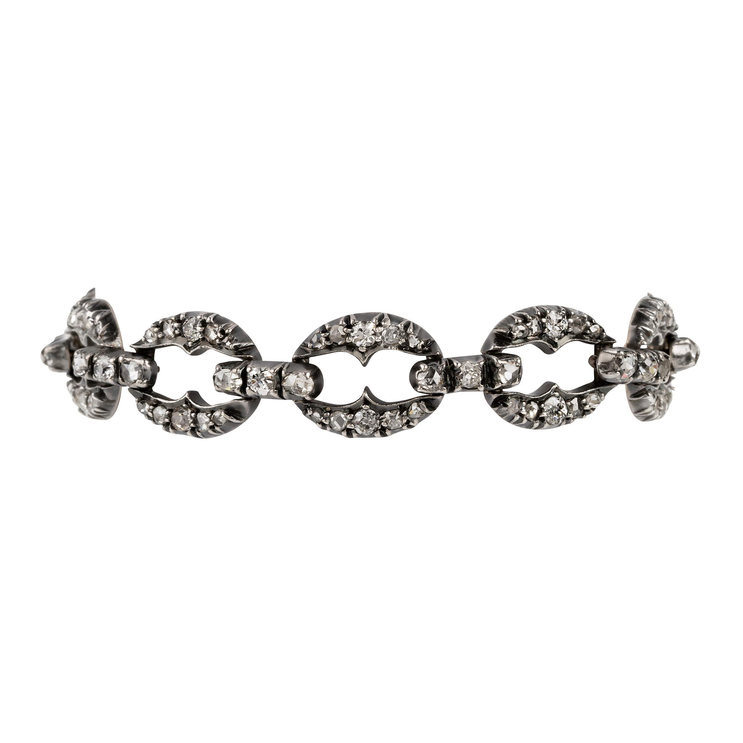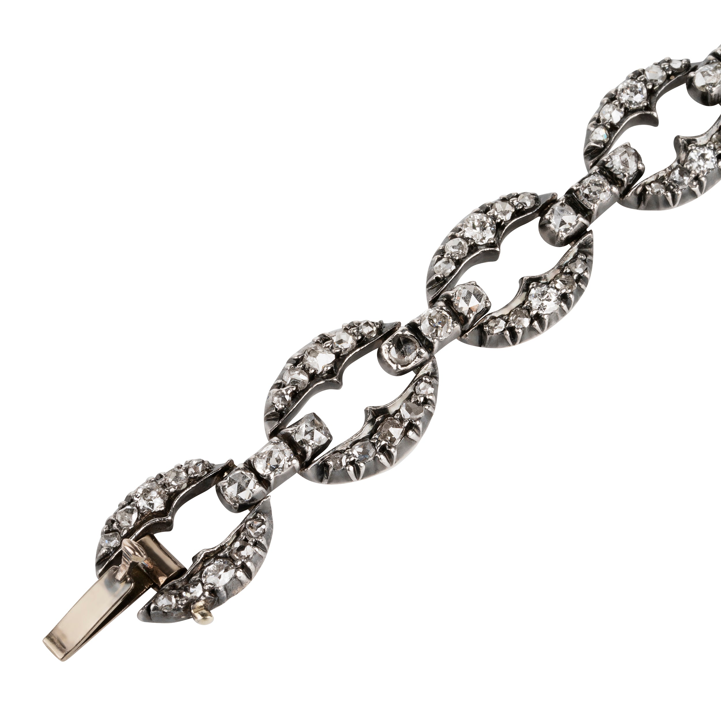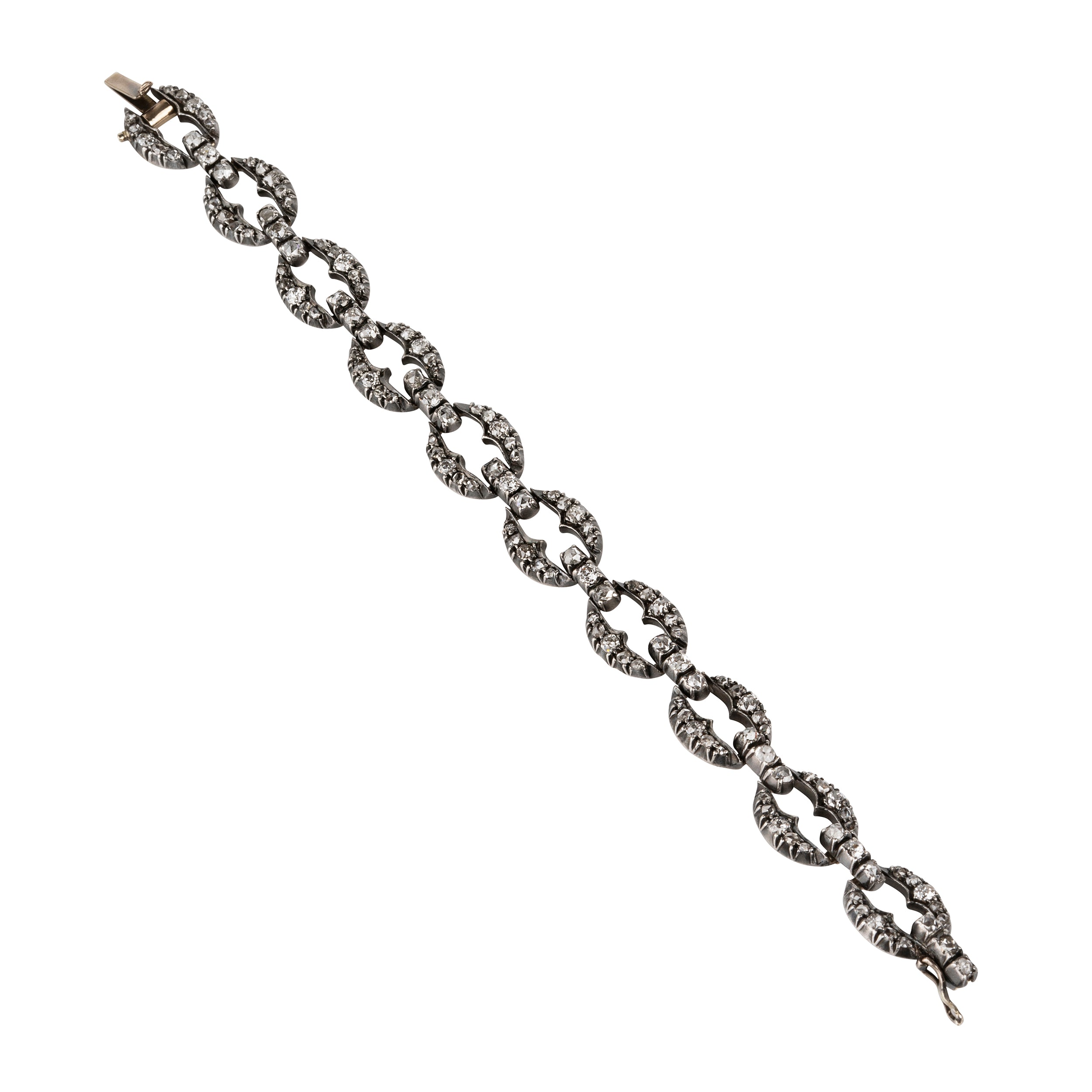 A slightly gothic take on a classic nautical motif. Each link is set with old mine-cut diamonds set in silver on gold. The expertly crafted piece lies beautifully on the wrist.