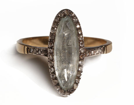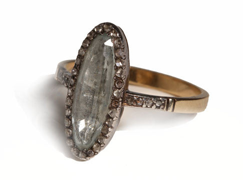This design is inspired by a labor-intensive setting technique common in 18th and 19th century rings. The silver-on-gold technique is true to the rings that inspired this design and are rarely seen in modern jewelry.