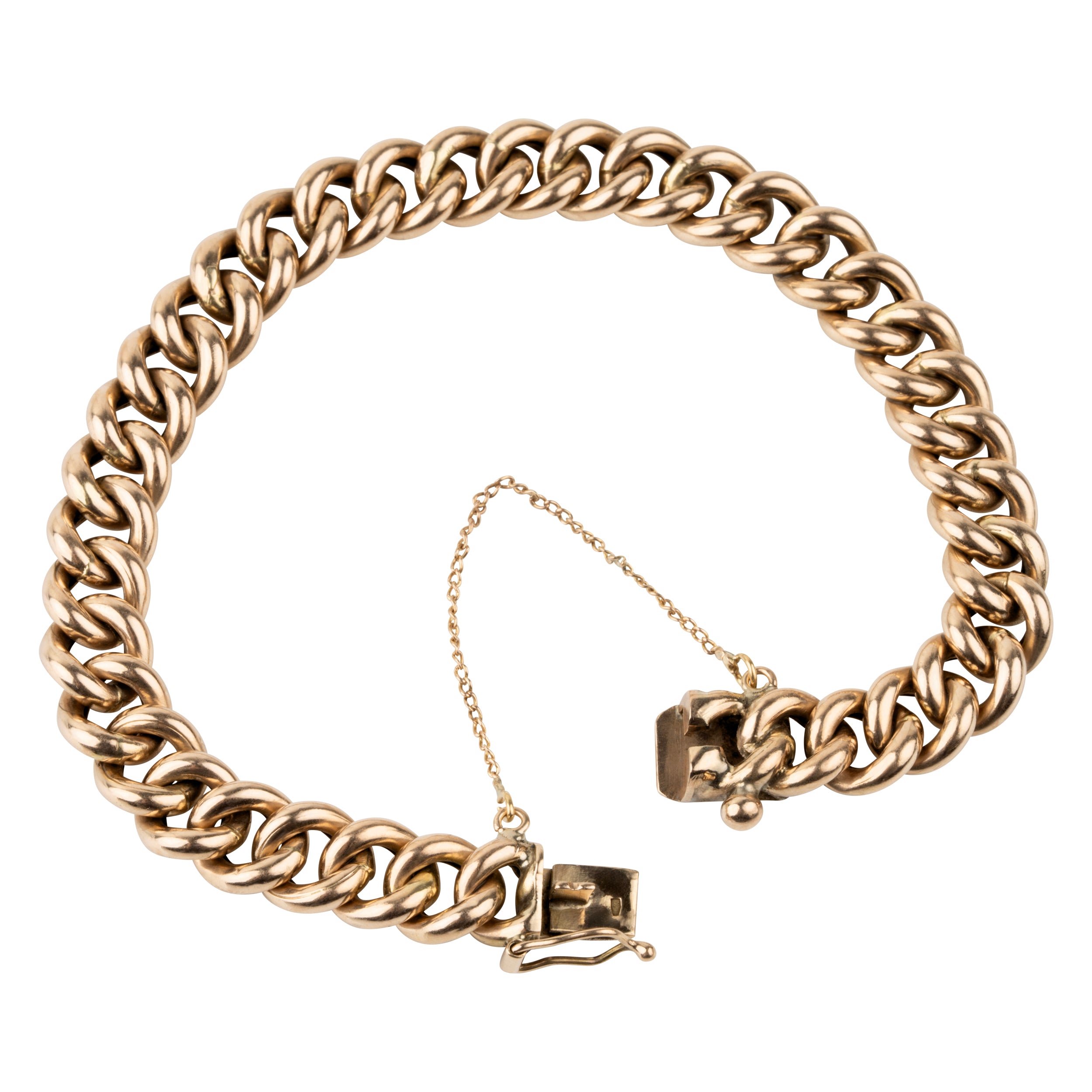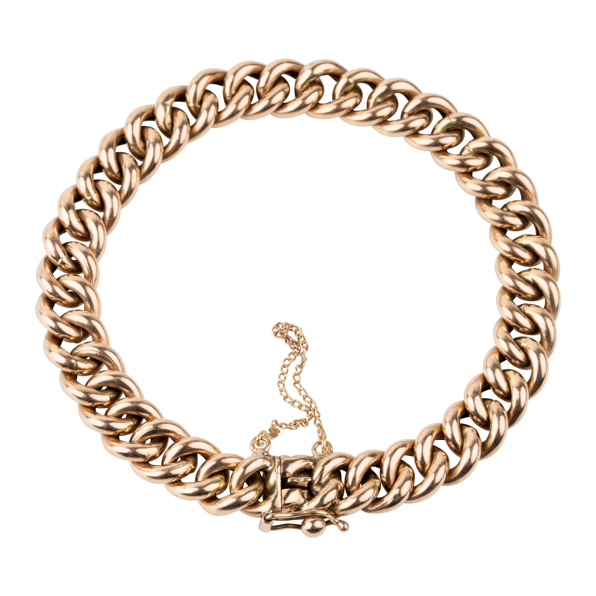 Classic 14k rose gold bracelet. The links are hollow, making the bracelet lightweight.