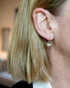 The earring measures 0.75 inches in drop length and 0.50 inches wide.