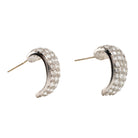 On Platinum earrings posts with backs. Measures .75" in drop length and .50" wide.