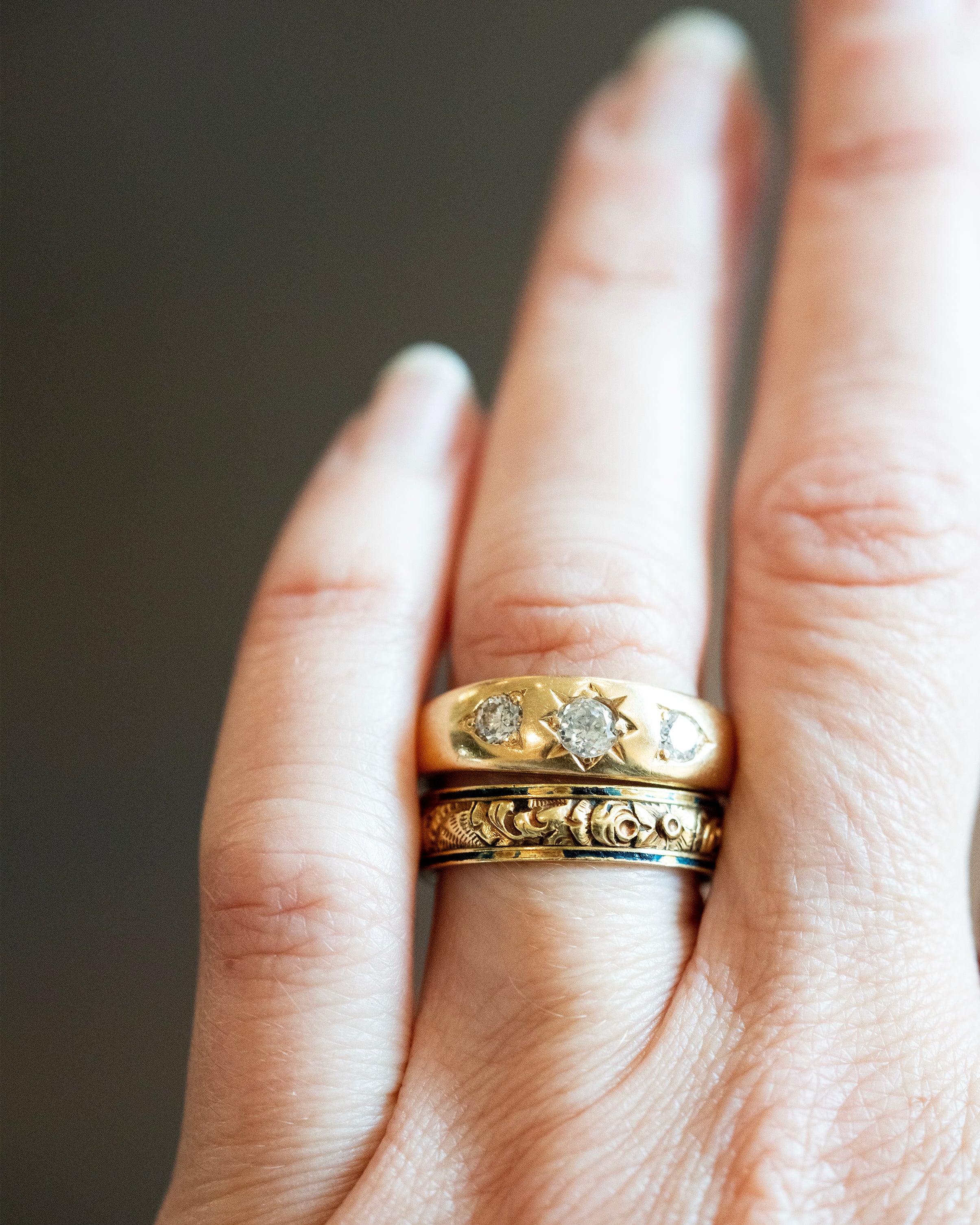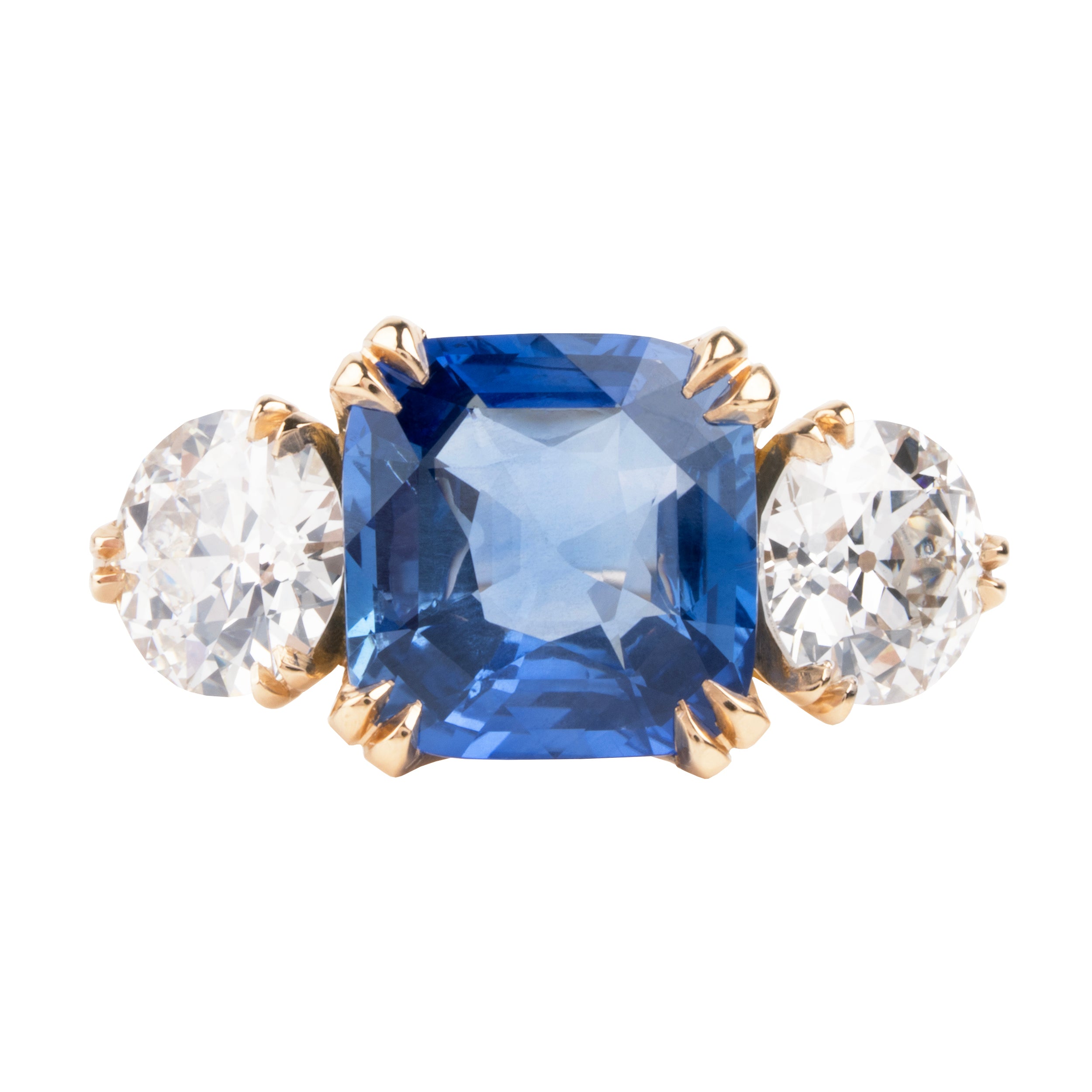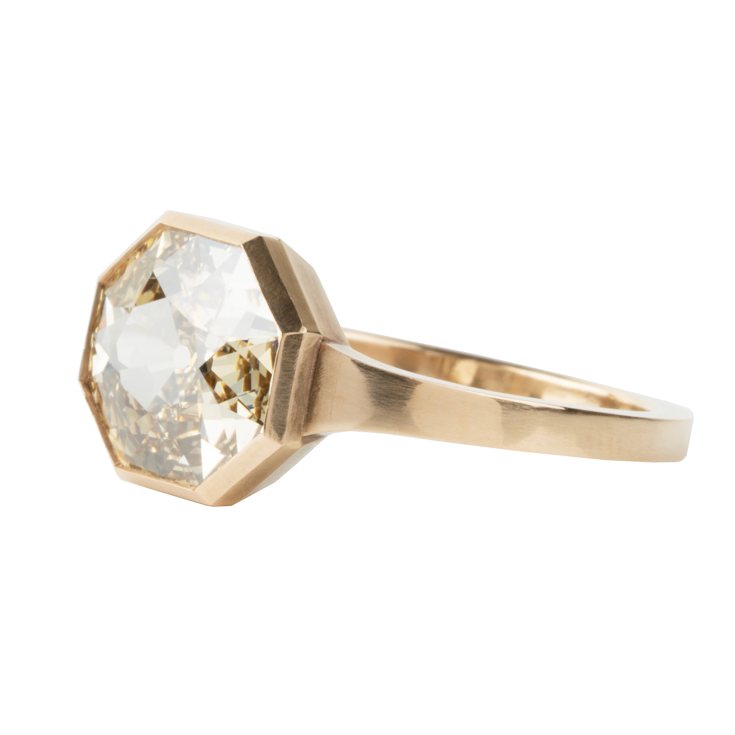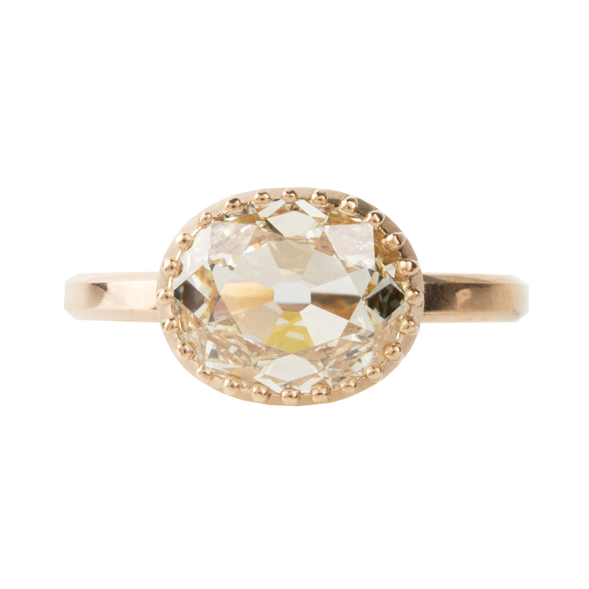 This design is inspired by a labor-intensive setting technique common in 18th and 19th century rings. The silver-on-gold technique is true to the rings that inspired this design and are rarely seen in modern jewelry.