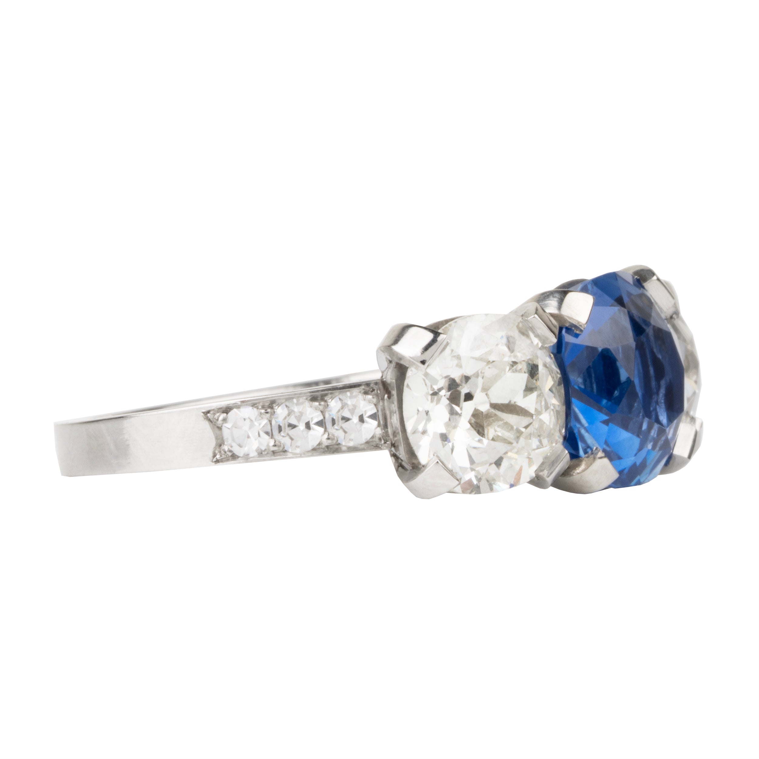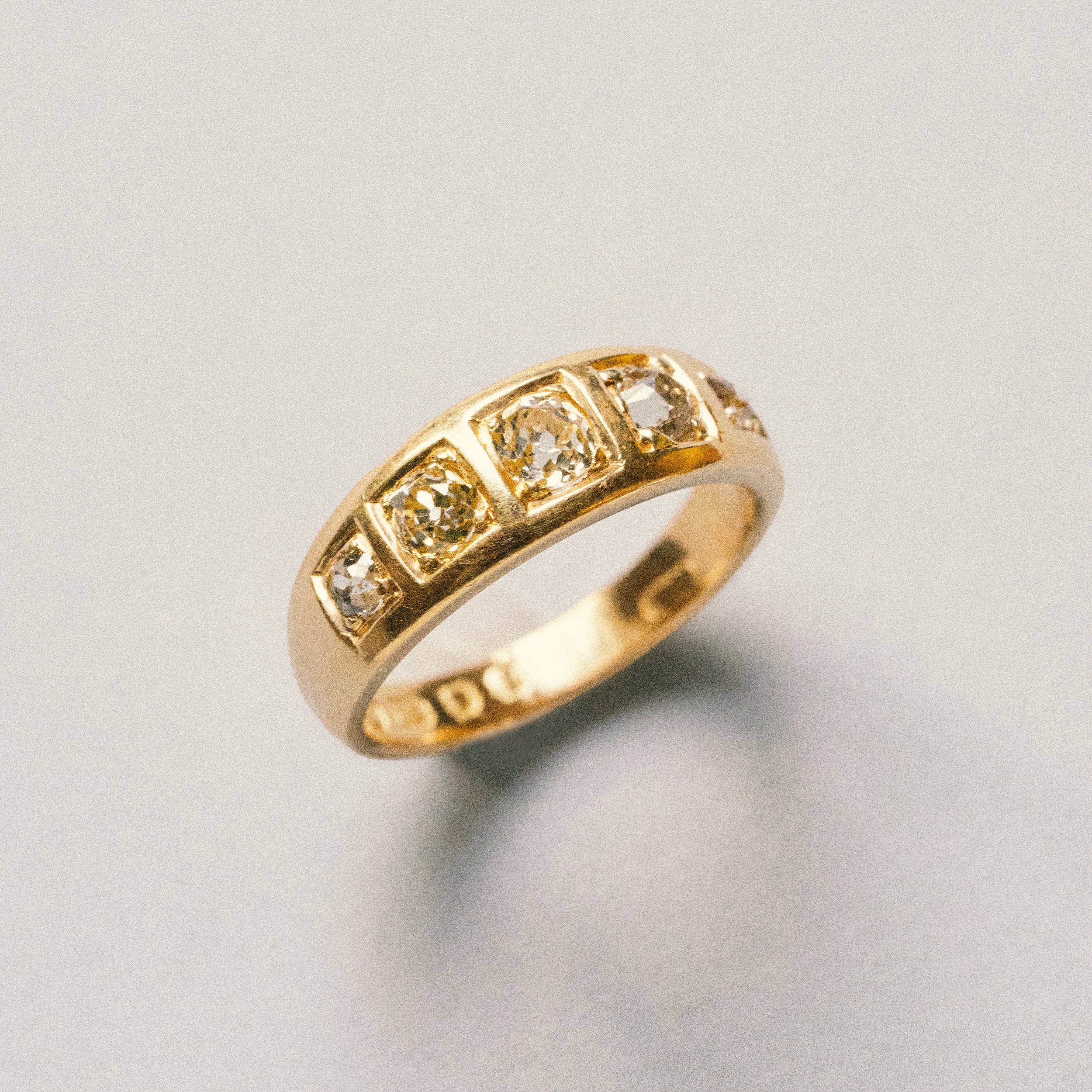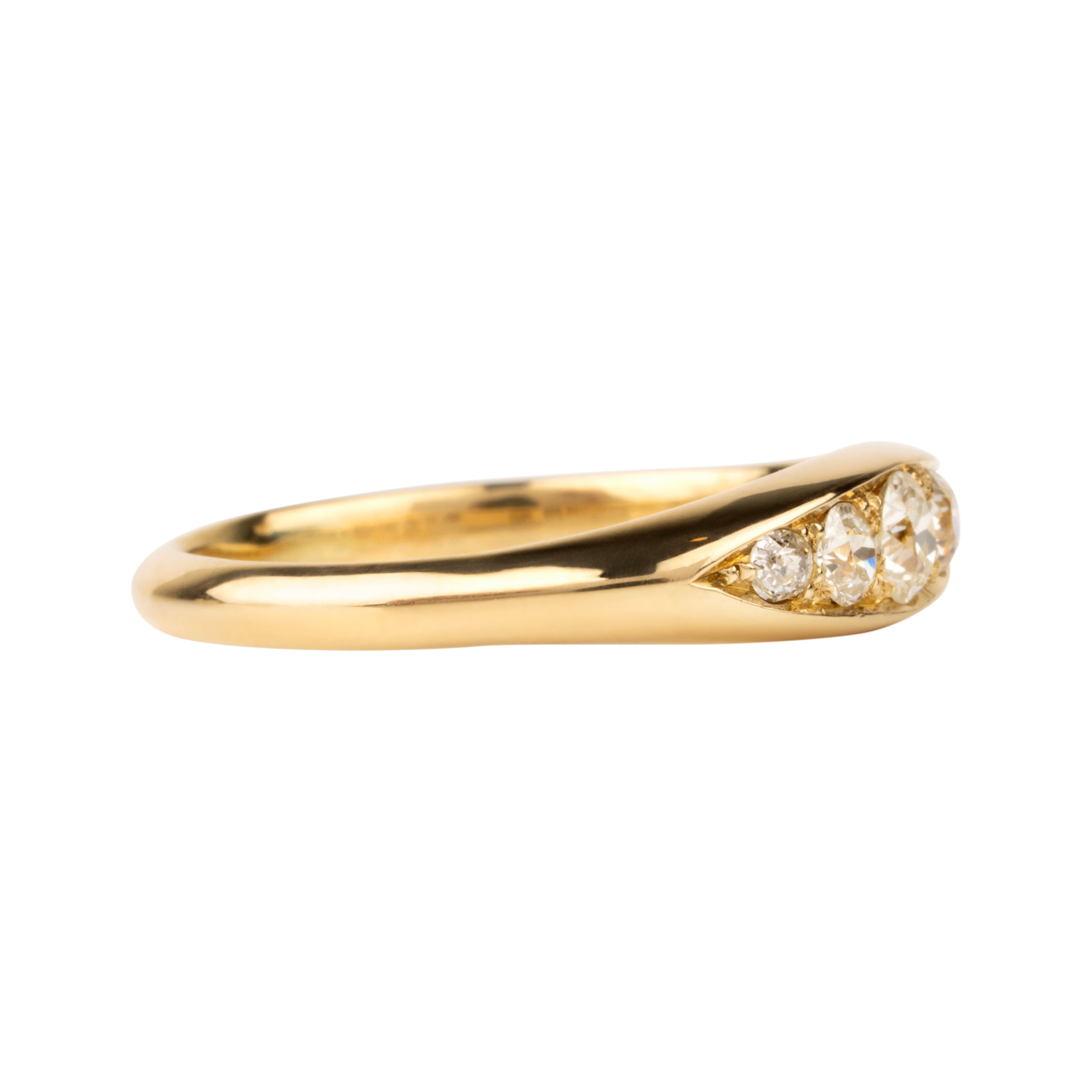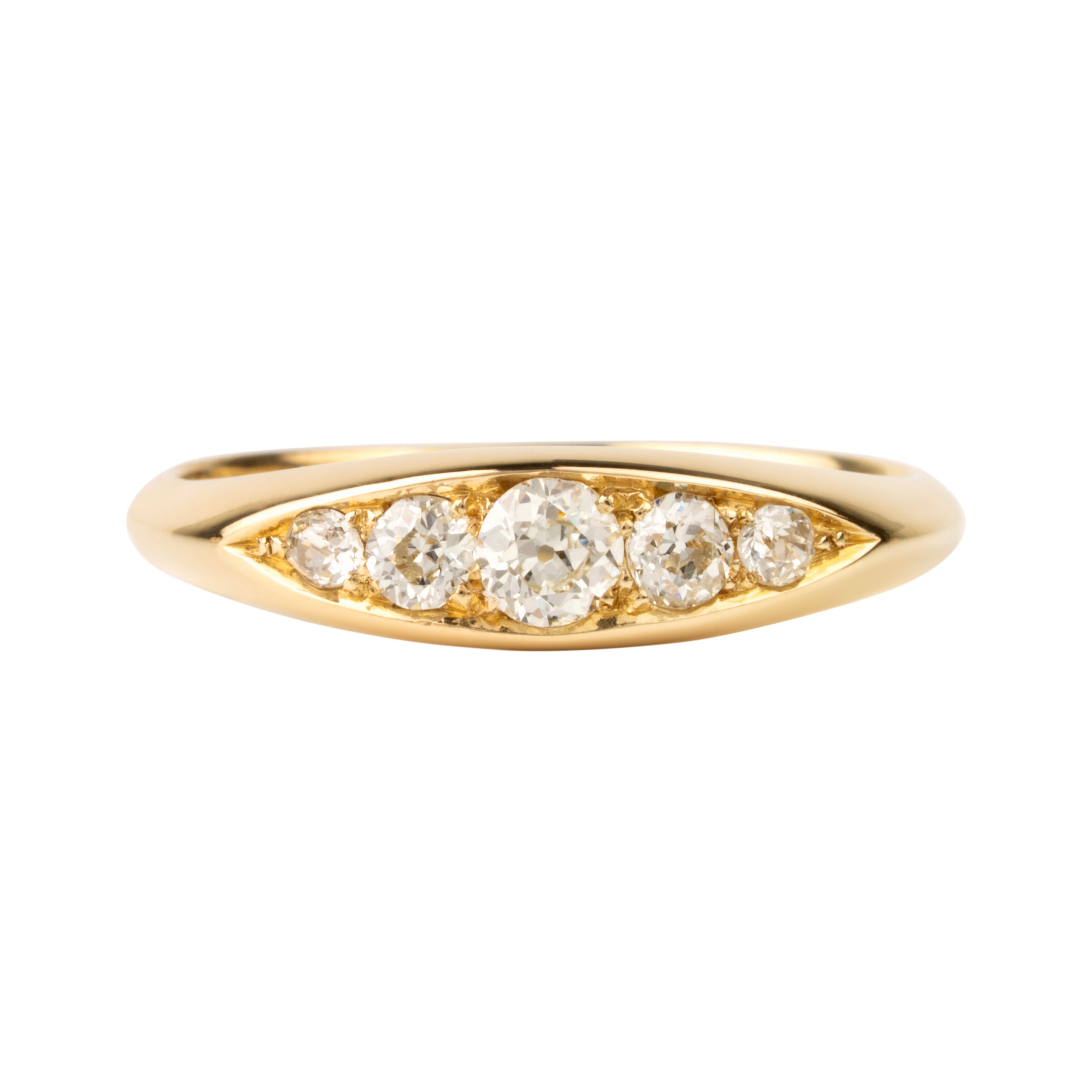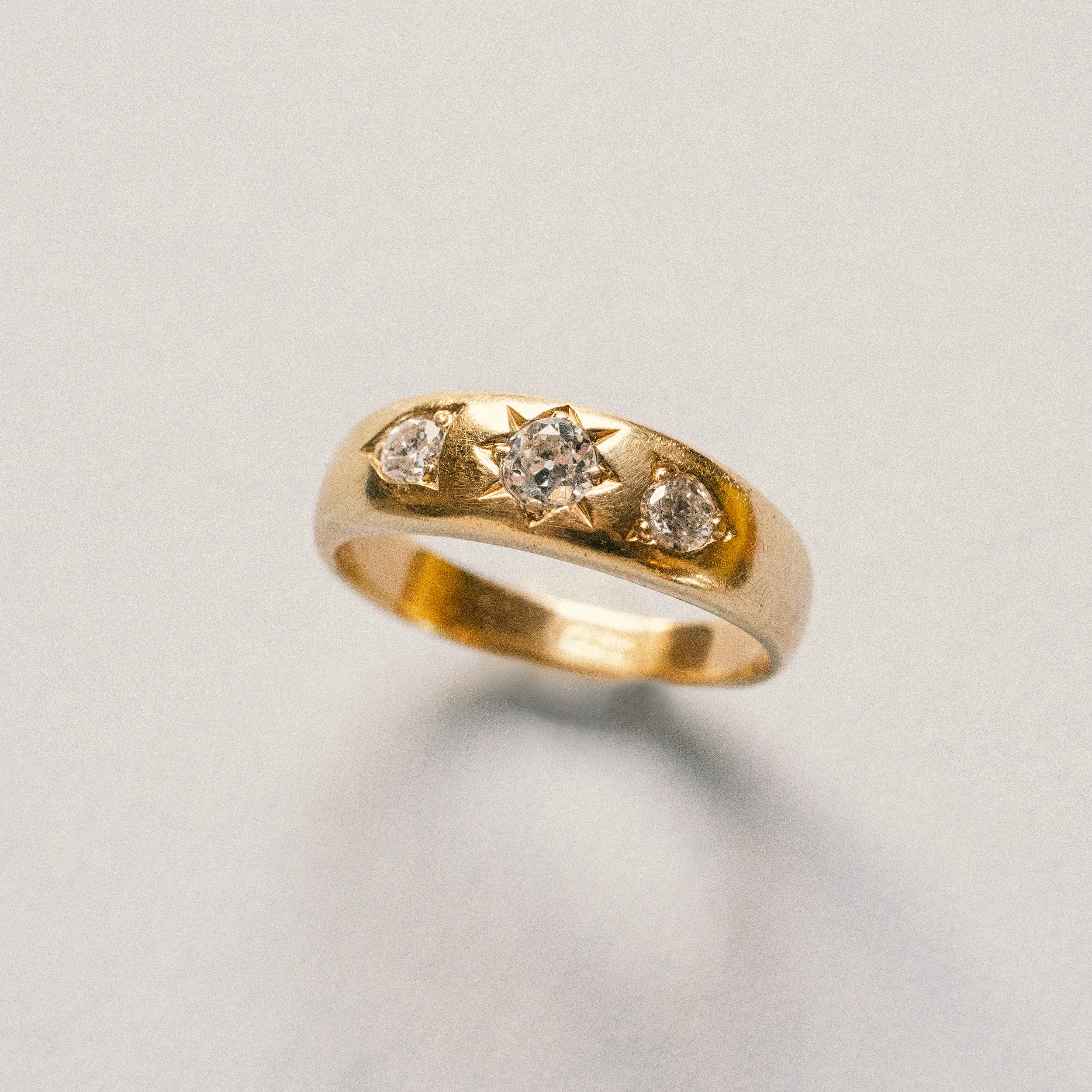 This design is inspired by a labor-intensive setting technique common in 18th and 19th century rings. The silver-on-gold technique is true to the rings that inspired this design and are rarely seen in modern jewelry.