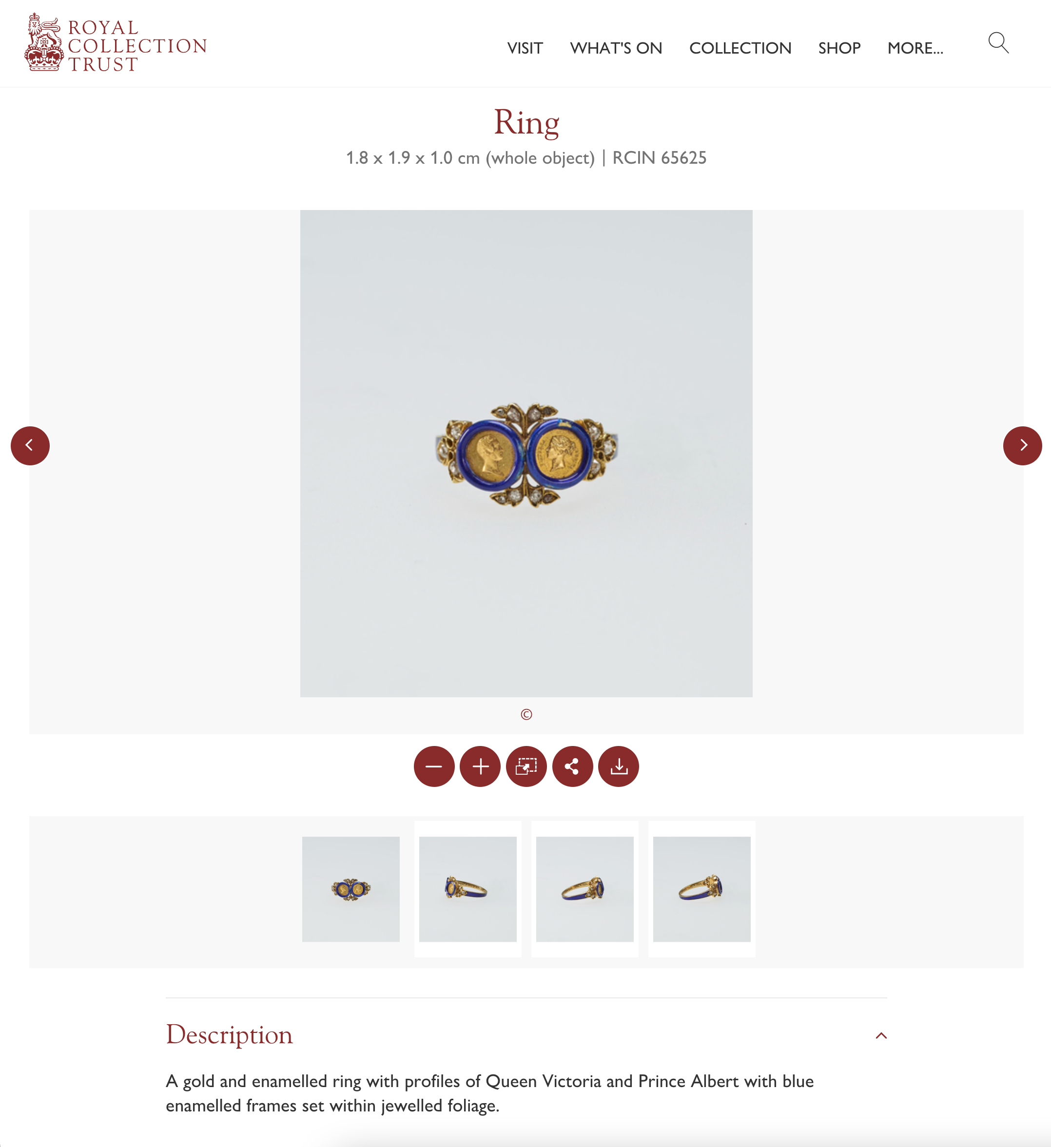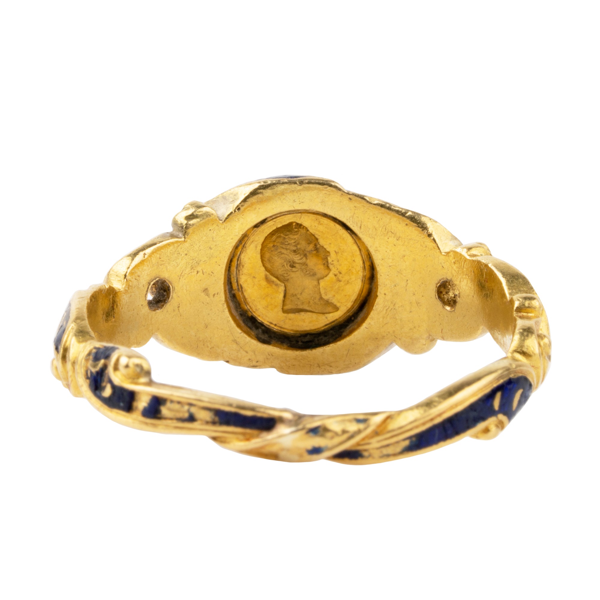 For hundreds of years, medals have been used to immortalize the actions of princes and emperors. Popular for the incorruptibility of the metals of which they are composed as well as the practicality of their production, they could be distributed in greater numbers than carved cameos or painted miniatures. They played an essential role in rewarding war services and in the signing of peace treaties, trade agreements, and the settlement of the terms of royal marriages, as is the case here. This ring commemorates the marriage of the young Queen Victoria to Prince Albert of Saxe-Coburg and Gotha, celebrating the union of the royal houses of Britain and the German state.