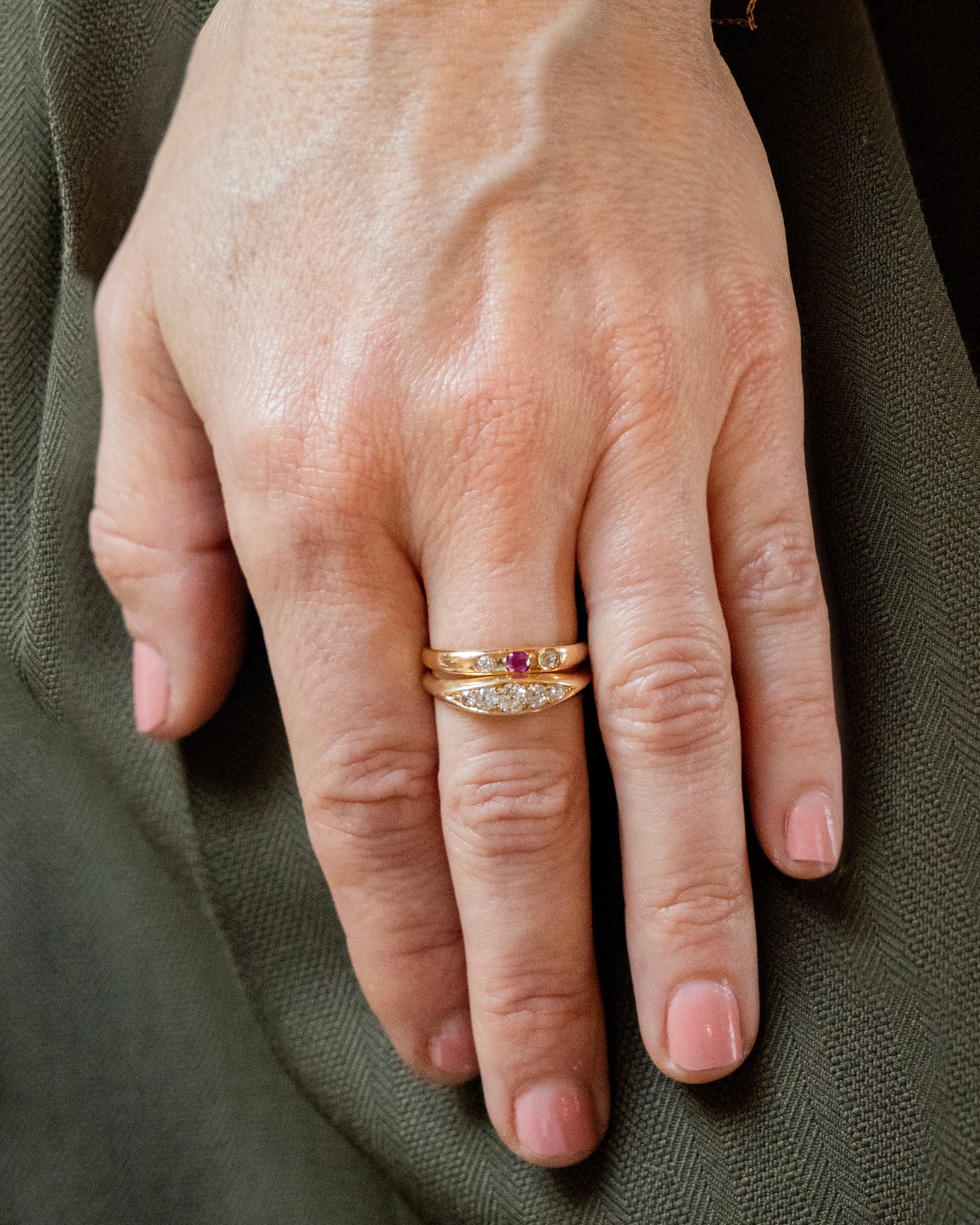 Victorian Era Ruby and Diamond Three Stone Ring