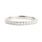 Our handmade bead-set diamond eternity ring uses a French bead-setting technique often seen in rings from the early 20th century. Single-cut diamonds are set in platinum. Each ring is manufactured specifically for you in our workshop. The ring can be made in our signature 'old' gold or our 18k yellow gold. A size 6.25 has approximately 0.66 carats in total diamond weight. The stones are of high quality and are of approximate grade of F+ color and VS-VVS clarity. Measures 2.1mm in width.