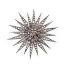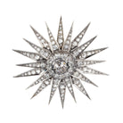 A bold turn-of-the-century convertible pendant and brooch made in platinum. It is likely that this was once the central element of an elaborate tiara. The additional tiara elements have been lost with time. The primary old European cut diamond is estimated to weigh approximately 1.30 carats. There are approximately 6.5 carats of additional stones. The brooch fixture is detachable, so it can be converted into a pendant. The piece includes a custom tool for removing the pin fitting. England, circa 1910.