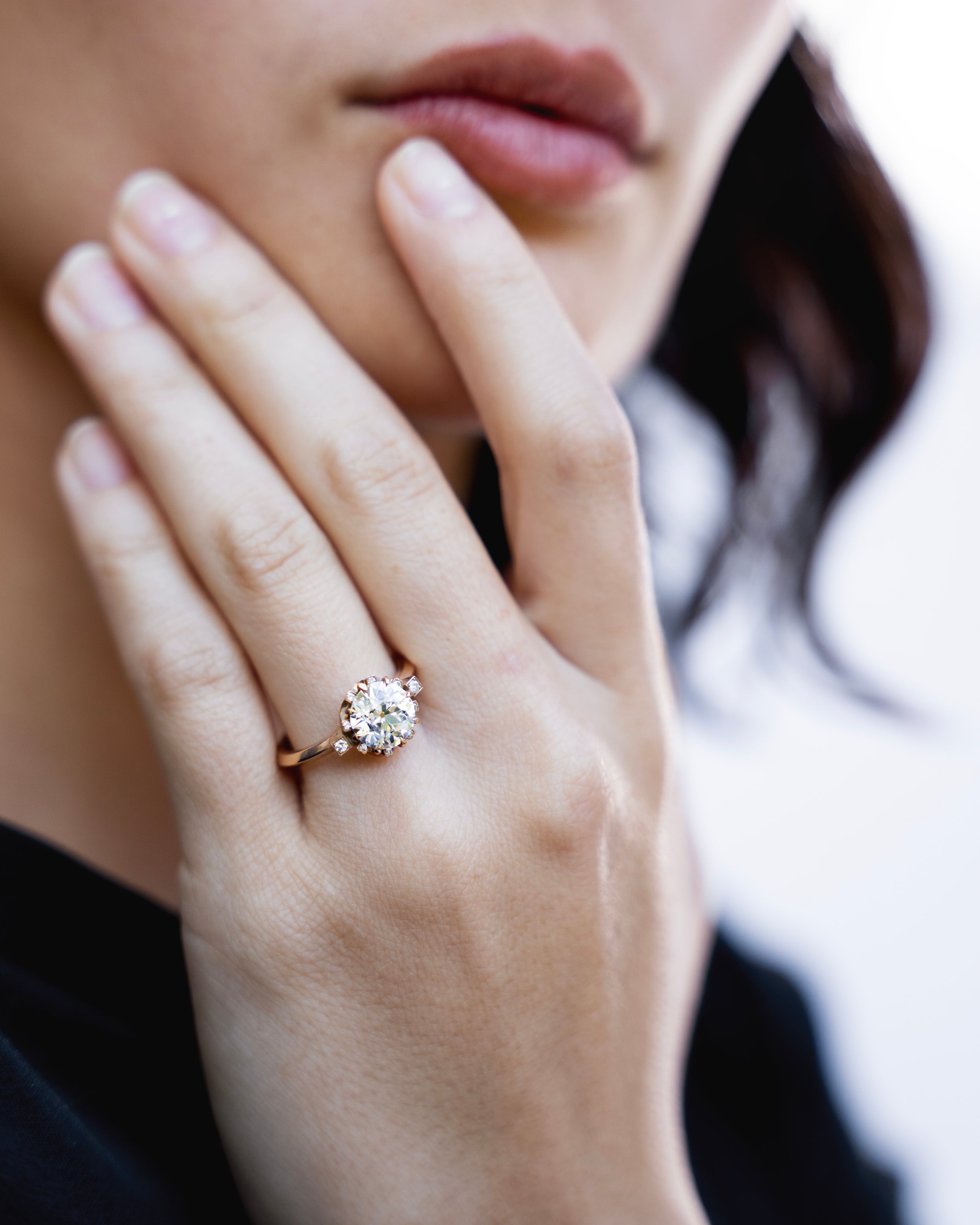 This design is inspired by a labor-intensive setting technique common in 18th and 19th century rings. The silver-on-gold technique is true to the rings that inspired this design and are rarely seen in modern jewelry.