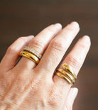 The density of pure gold is surprising. For thousands of years, humans have been drawn to gold, it's magnetism is clear when you hold it in its pure form. Our pieces forged in 22k have warmth and appeal that is hard to put into words. This rich color looks at home with antique and modern rings and will develop a beautiful softness with age. We are happy to arrange shipping you a sample so you can feel it for yourself.