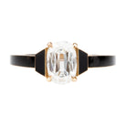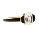 Inspired by Victorian era black jewelry, we designed this unique ring with onyx enamel details. The prongs are hand filed to precise points and the traditional vitreous enamel is meticulously applied to the sides and shoulders of the ring. This ring features a cushion cut diamond of approximately 1.01 carats. Handcrafted in our 18k old gold.