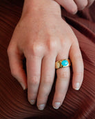 Bell & Bird Heavy Gold Flush Set Turquoise Ring