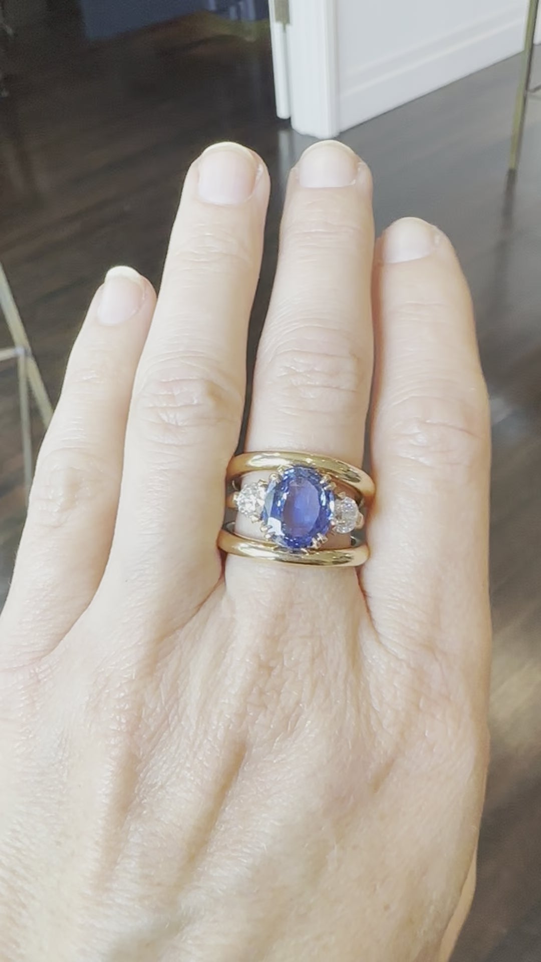 Bell & Bird Sapphire and Diamond Three Stone Ring