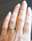 One of our signature Bell and Bird designs. This solitaire ring features a main round old European cut diamond surrounded by 8 single-cut diamonds subtly peeking out from underneath the main stone. There are two additional single-cut diamonds at the base of the whisper-thin, hand-filed knife edge band. Set in our 18k old gold. This ring features a GIA certified 2.27 carat I color and VS2 clarity old European cut diamond. Handcrafted in our 18k old gold.