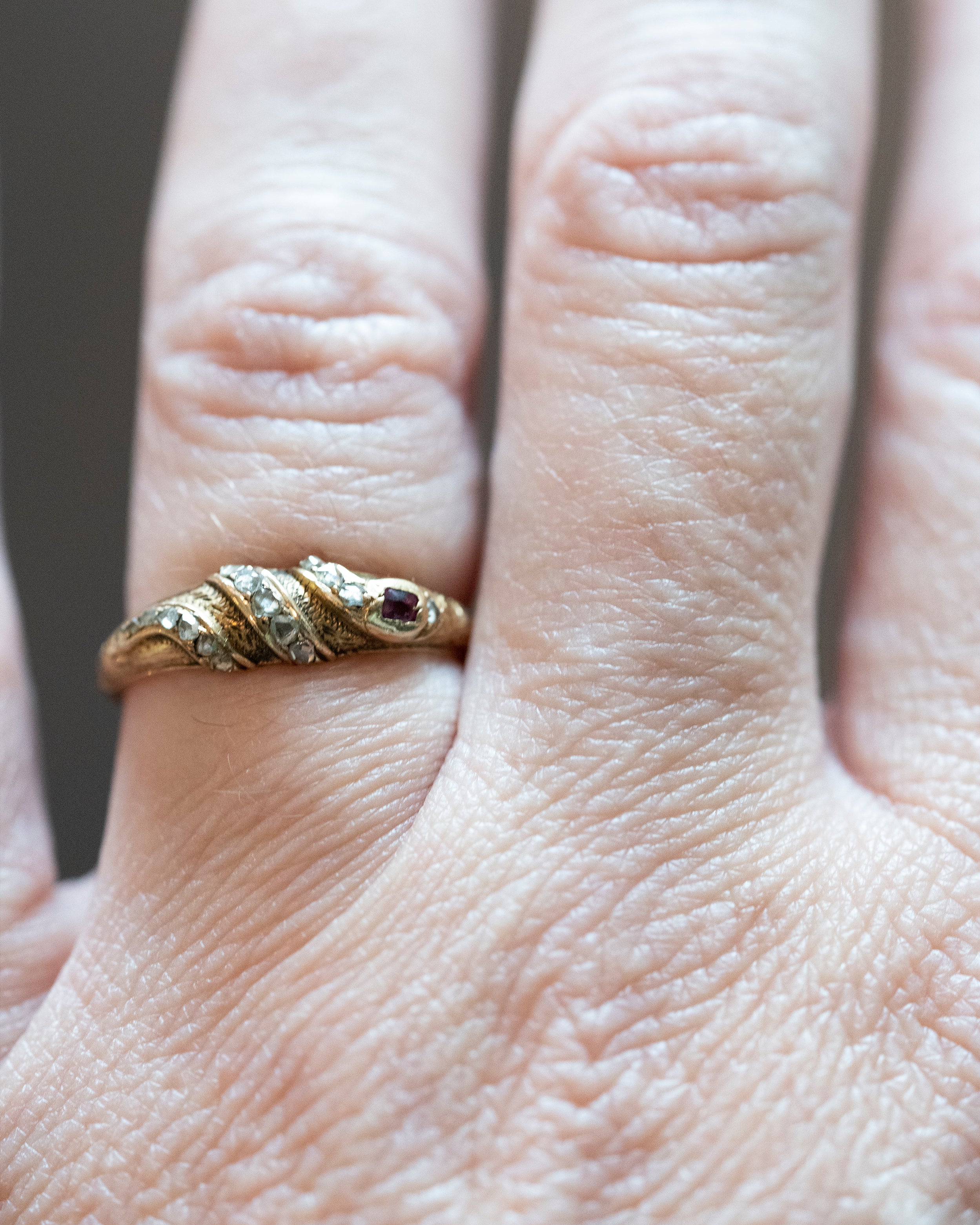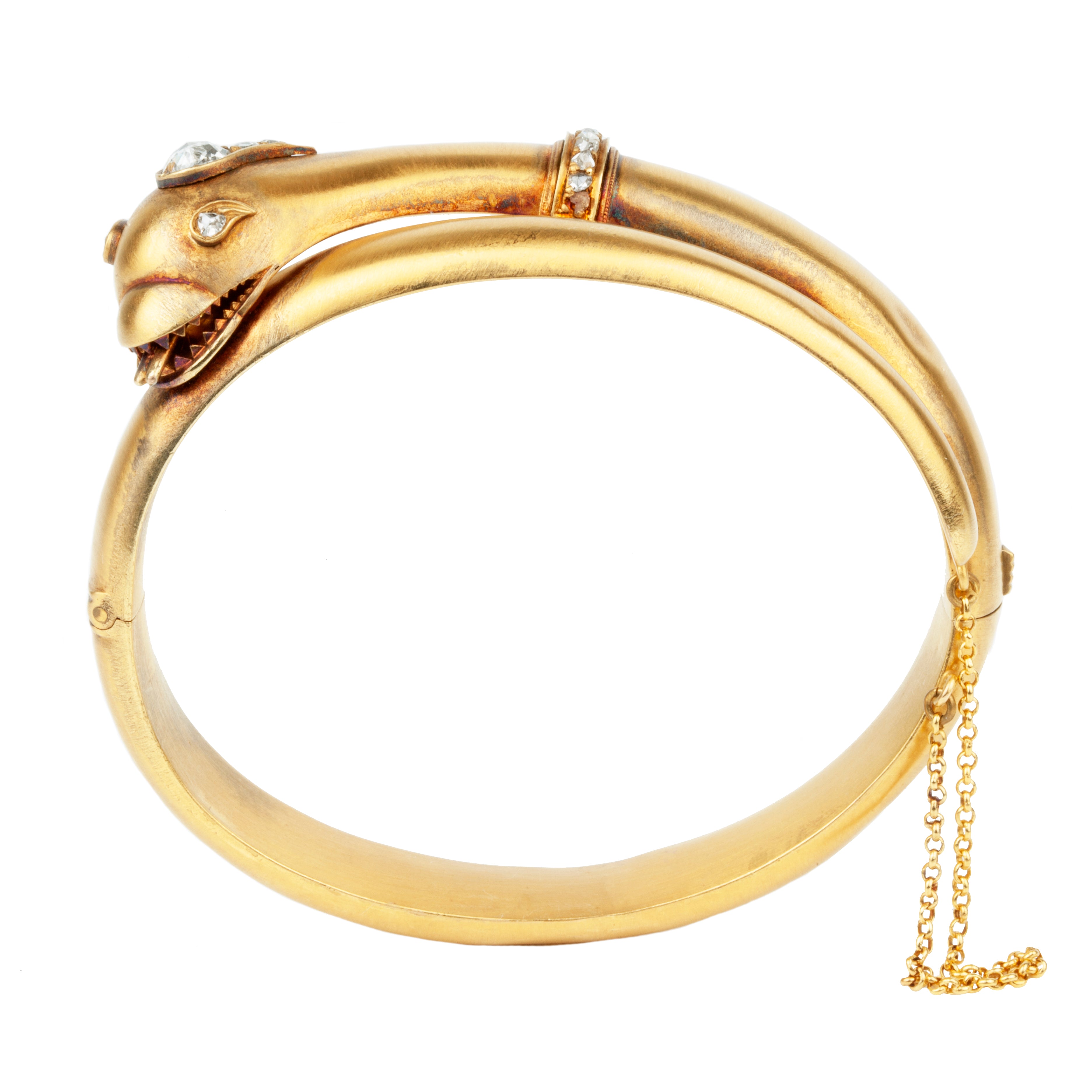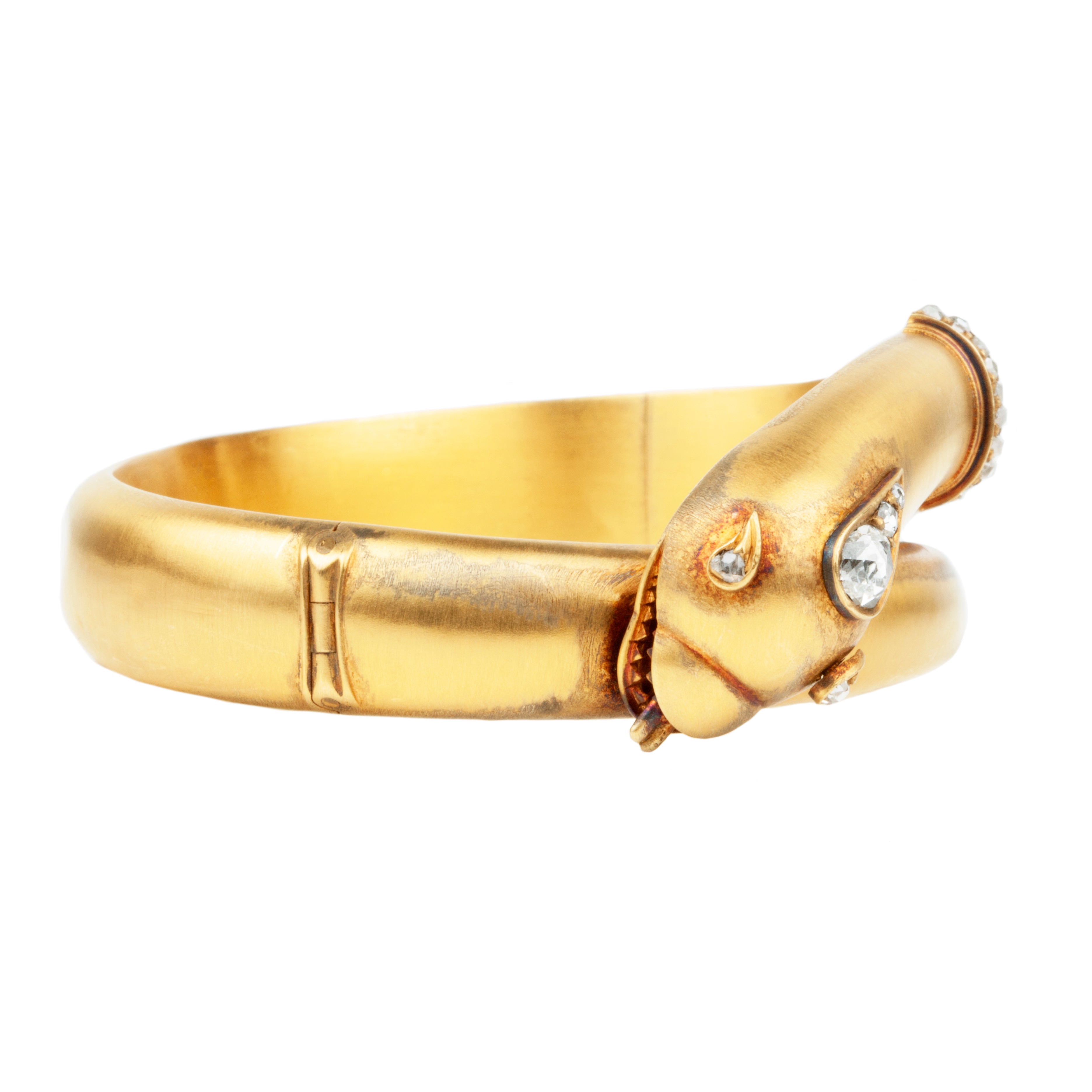 The serpent wound its way through 19th century jewelry as an amulet, talisman, good luck charm and symbol of enduring love.