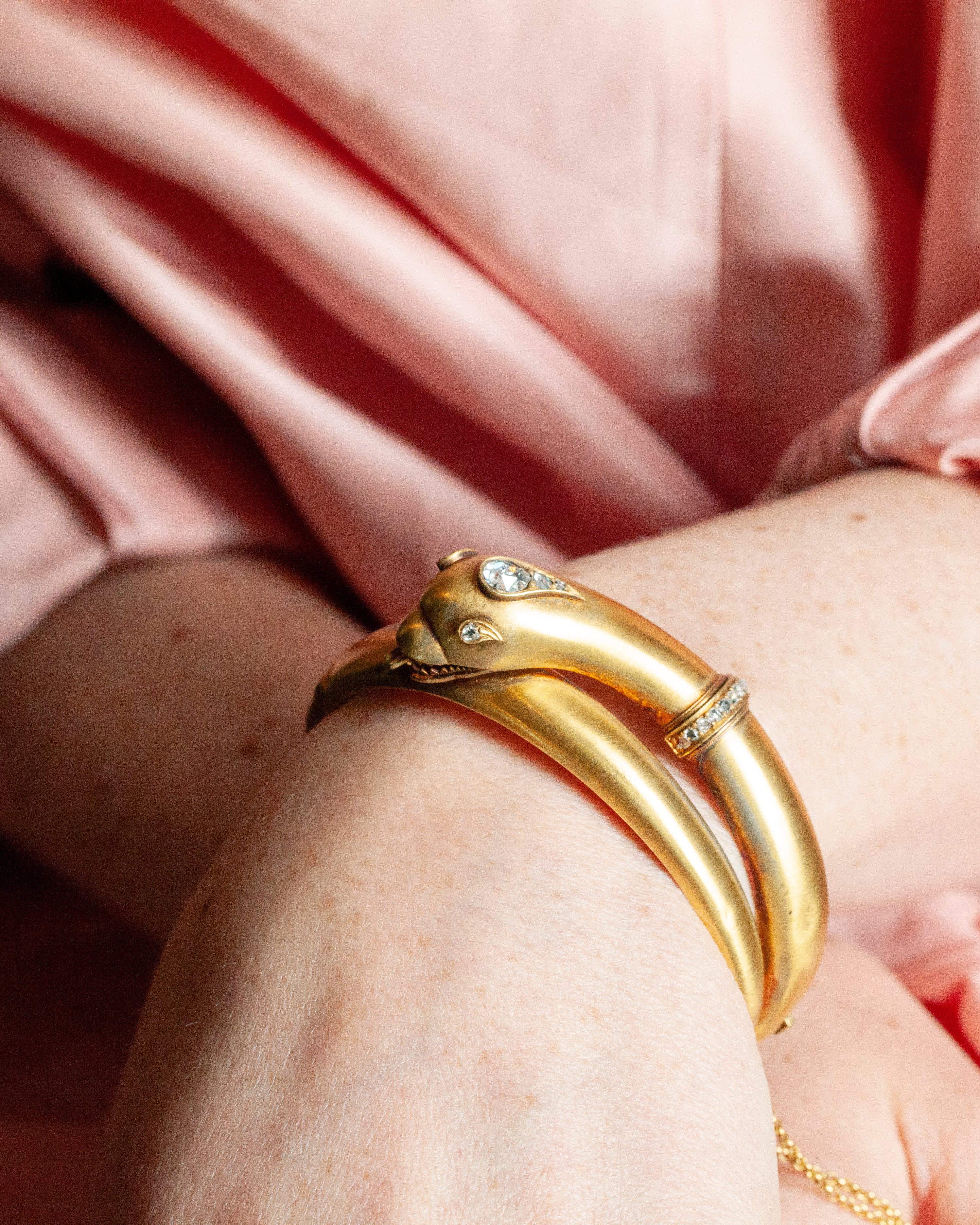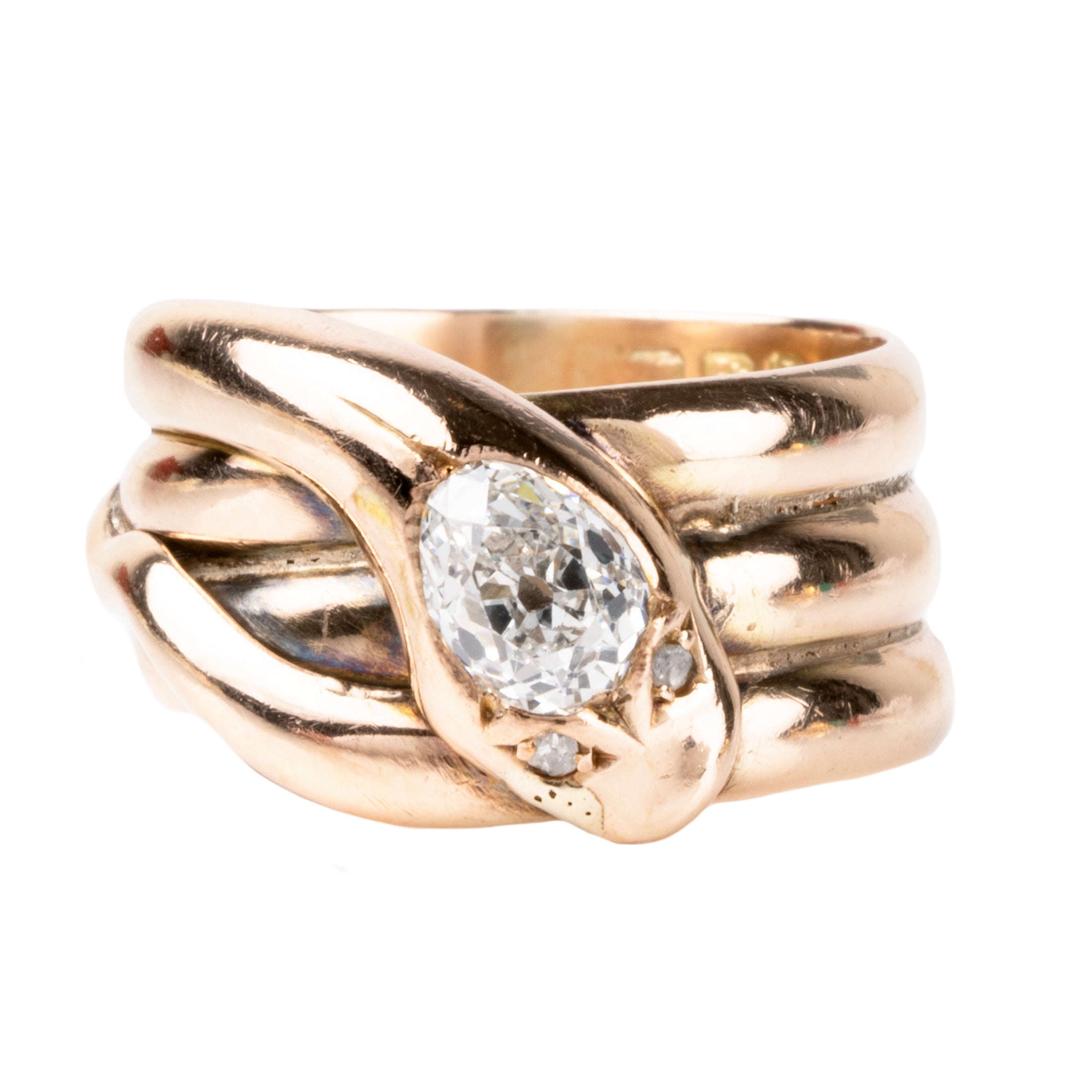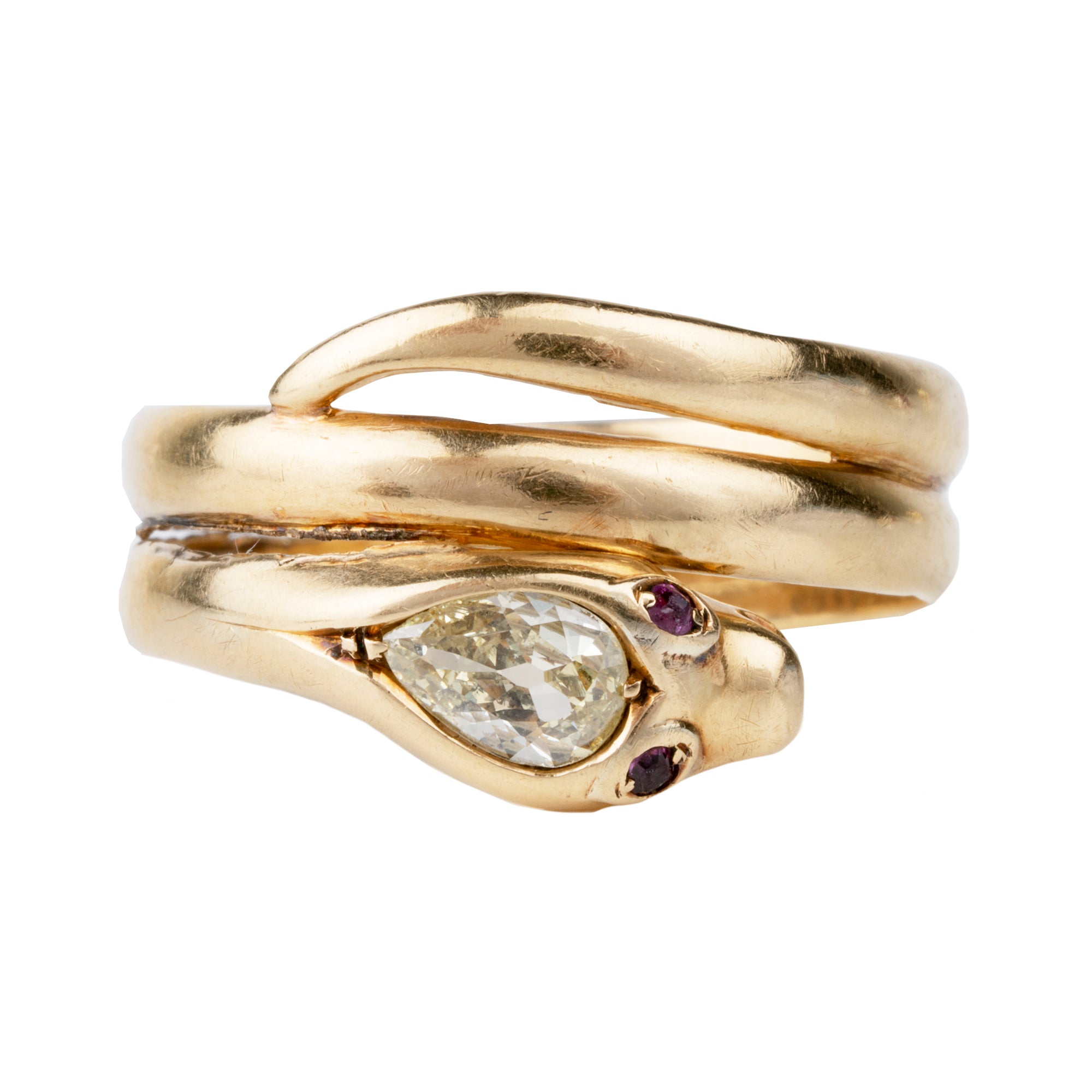 The serpent wound its way through 19th century jewelry as an amulet, talisman, good luck charm and symbol of enduring love.