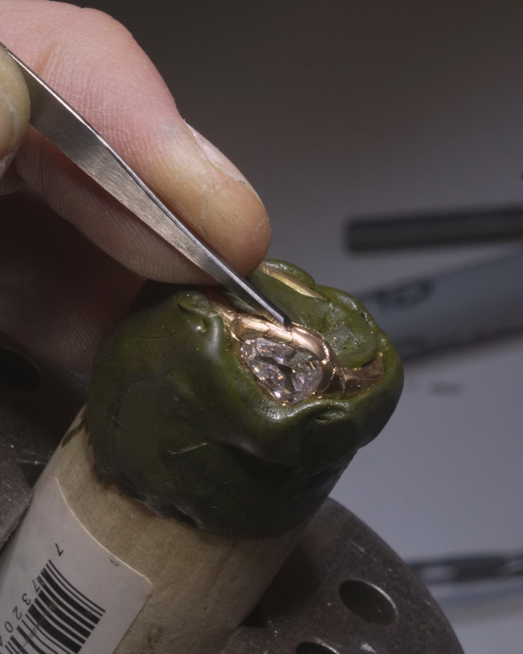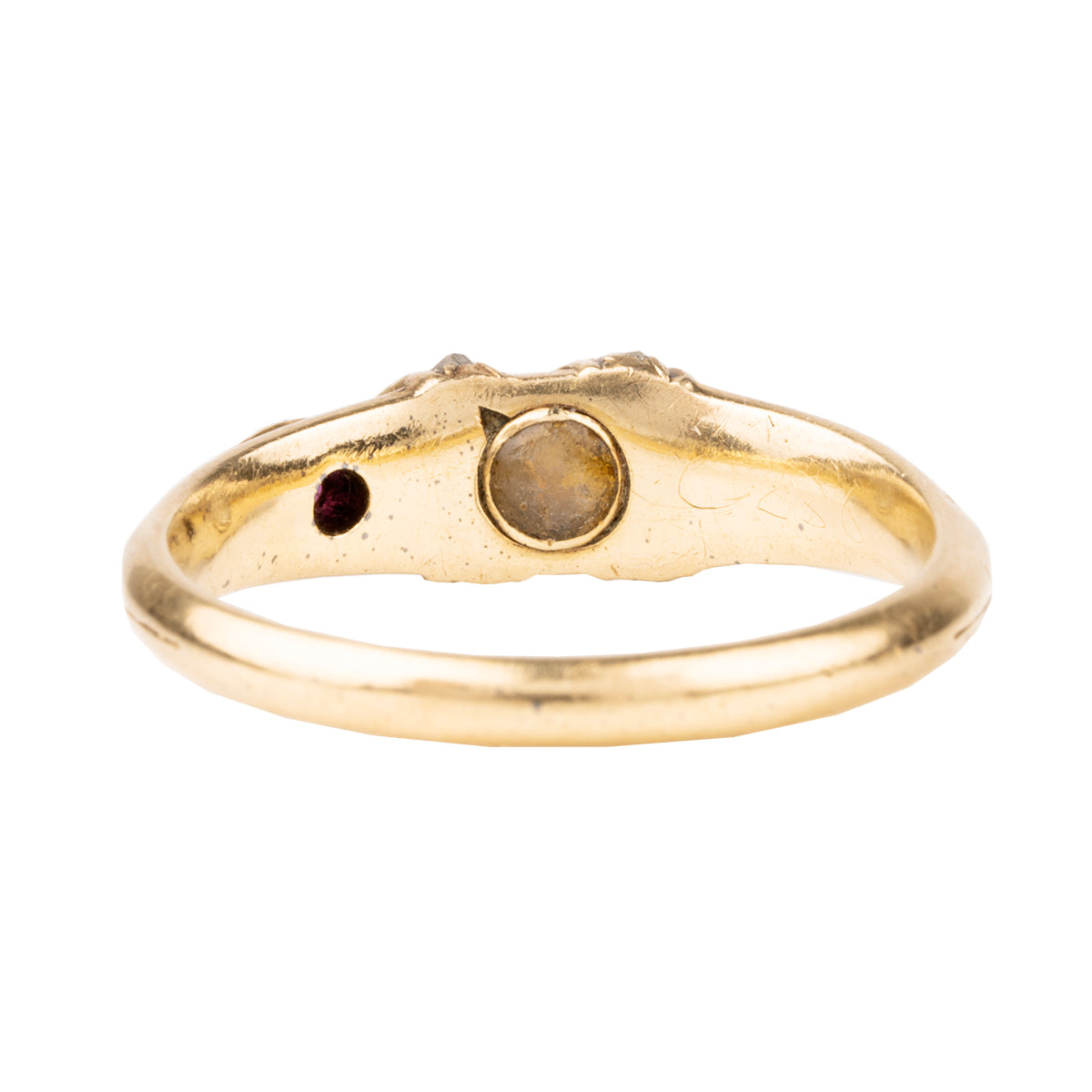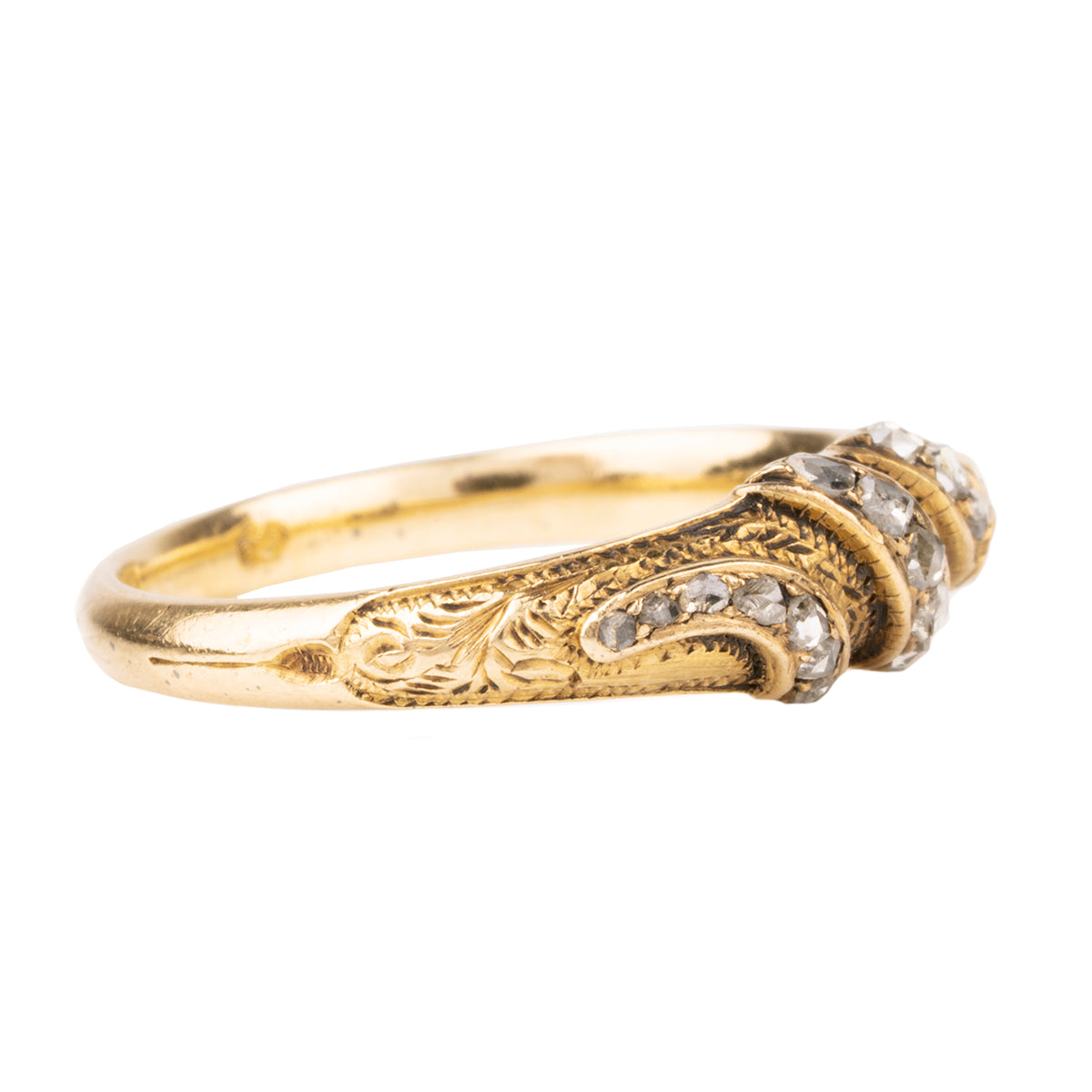 Handmade in our Texas workshop, this ring is in our custom blend of 18K rose gold. A more subdued, darker tone than commercially available modern rose gold. We call this color "old gold" and created the alloy in the spirit of the many 19th century rings we have handled.