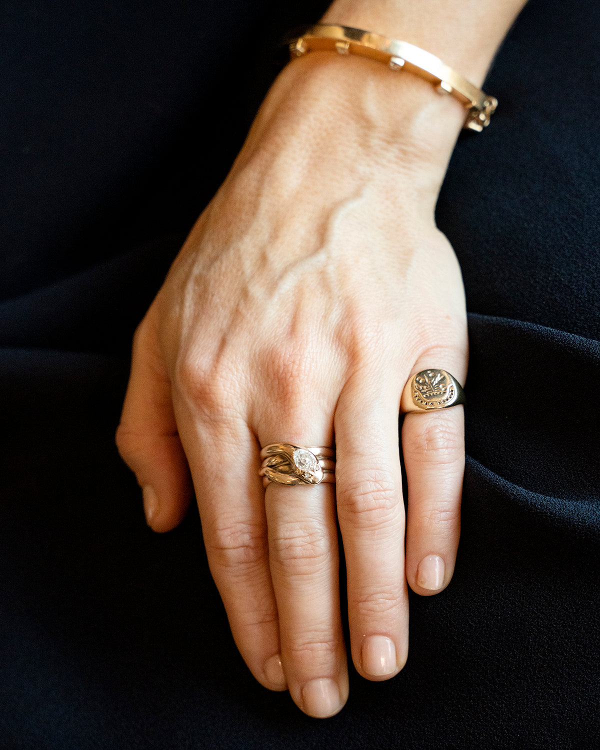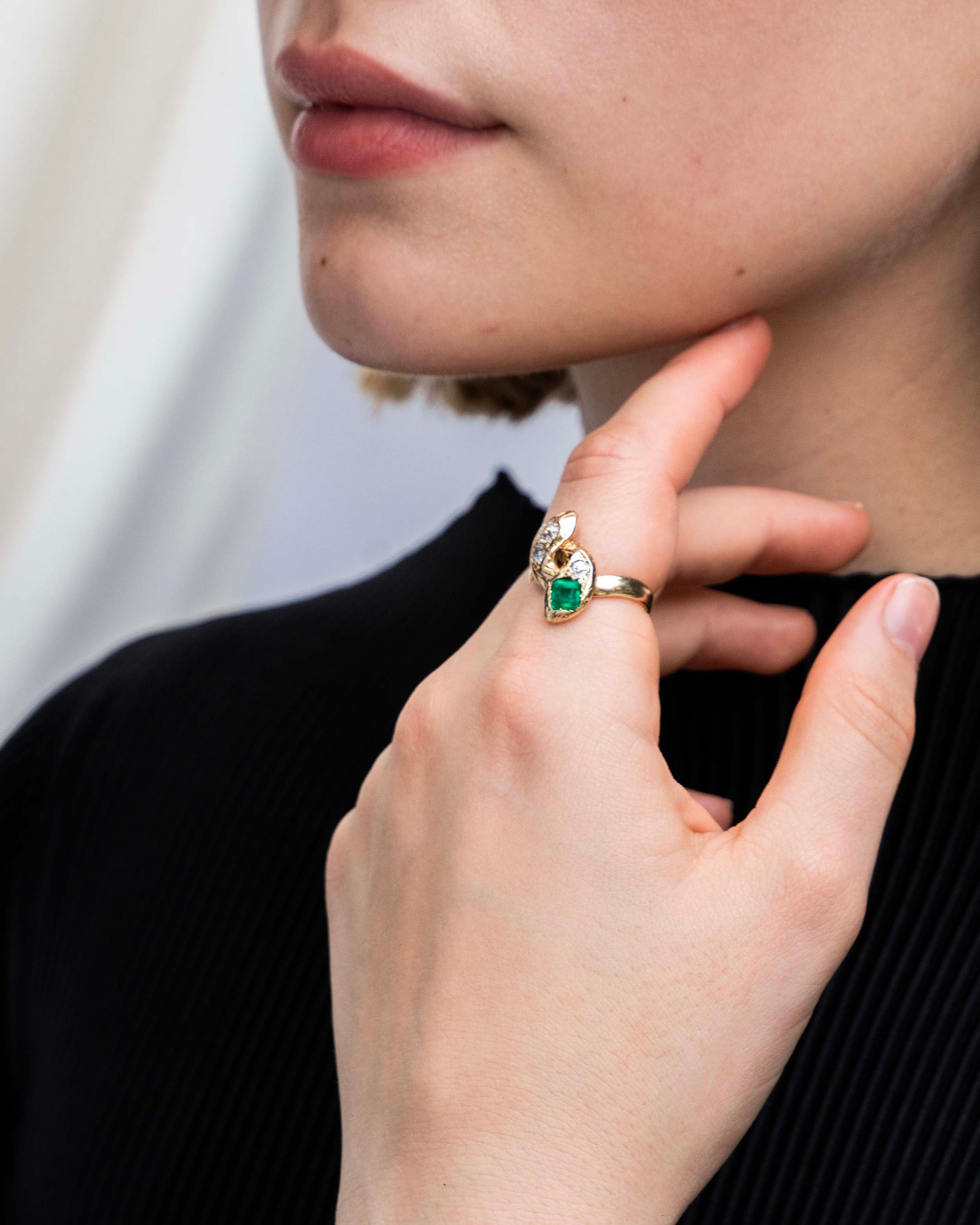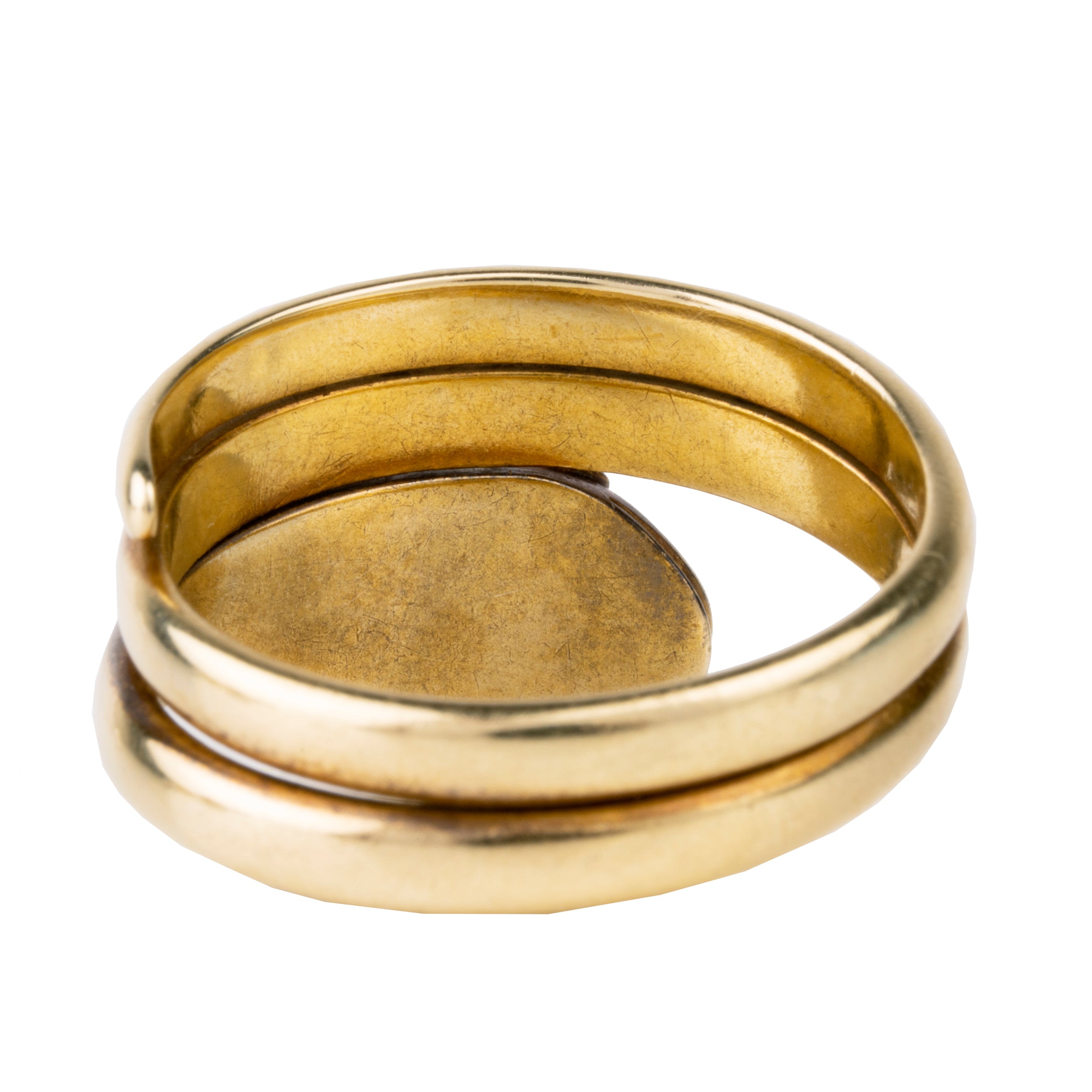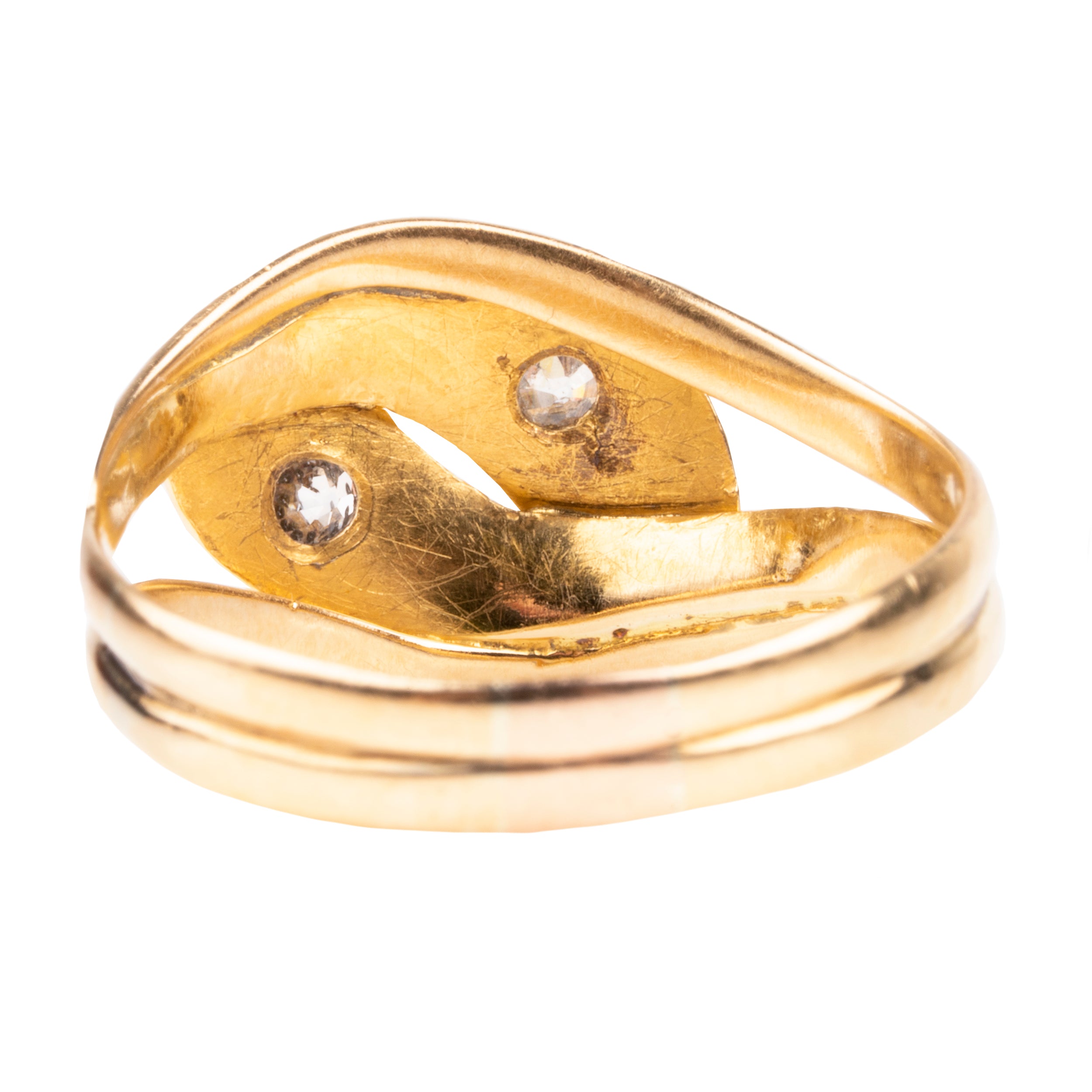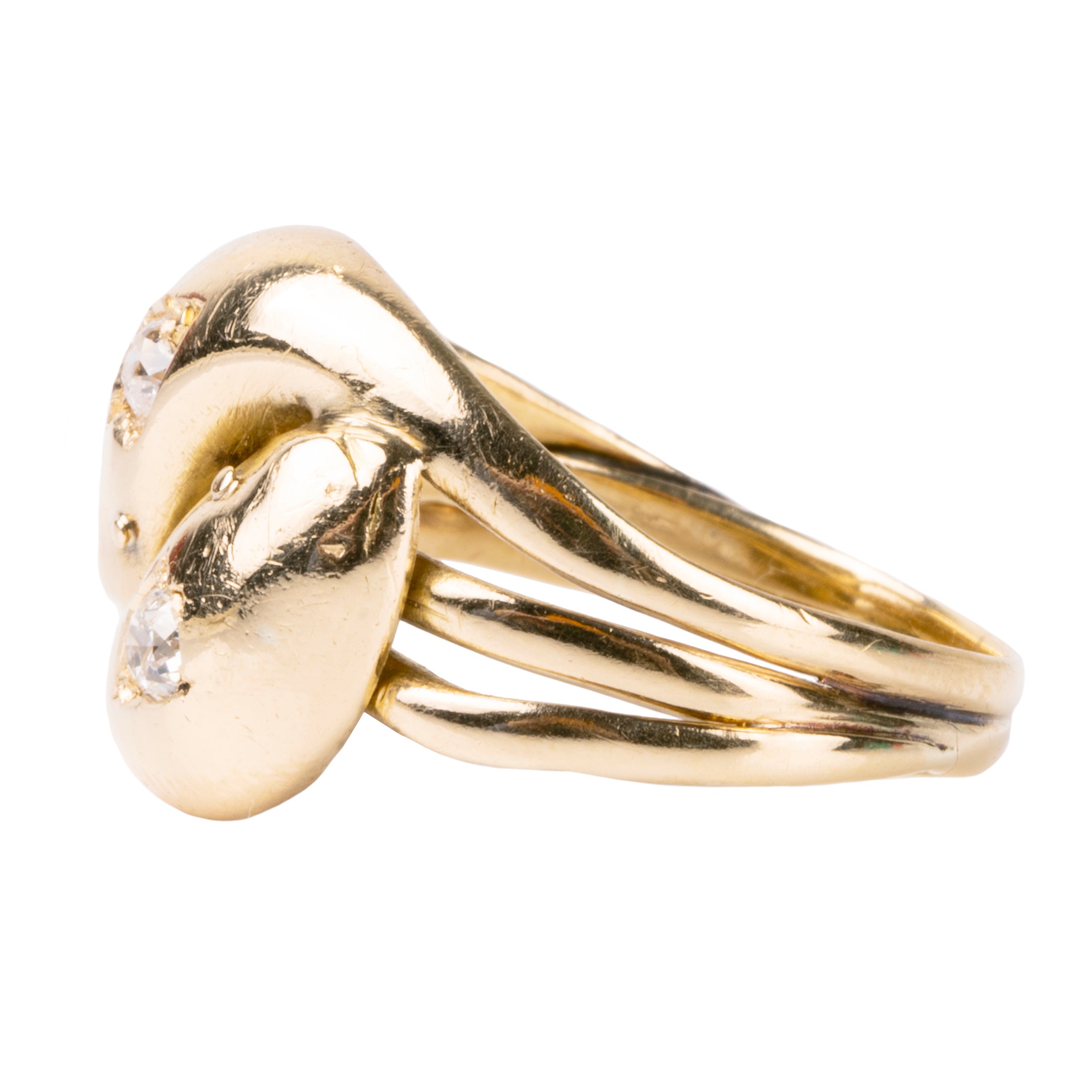 Bell and Bird No. 3931 ouroboros snake ring, one of our signature designs. The Ouroboros is a centuries-old symbol of eternity and wholeness. Completely hand fabricated in our custom color 18K old gold. Inspired by Victorian-era snake rings that have passed through our hands.