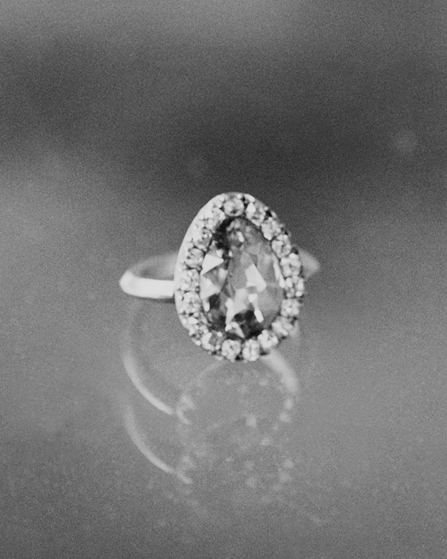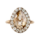 This ring was designed and hand-fabricated in our Texas workshop, drawing direct inspiration from Georgian-era rings of the 18th century. At its center is a naturally colored diamond of exceptional clarity, cut in an antique style to echo the rings of the past. Surrounding it are eighteen old mine-cut diamonds—each unique in shape and sourced from original period jewels.