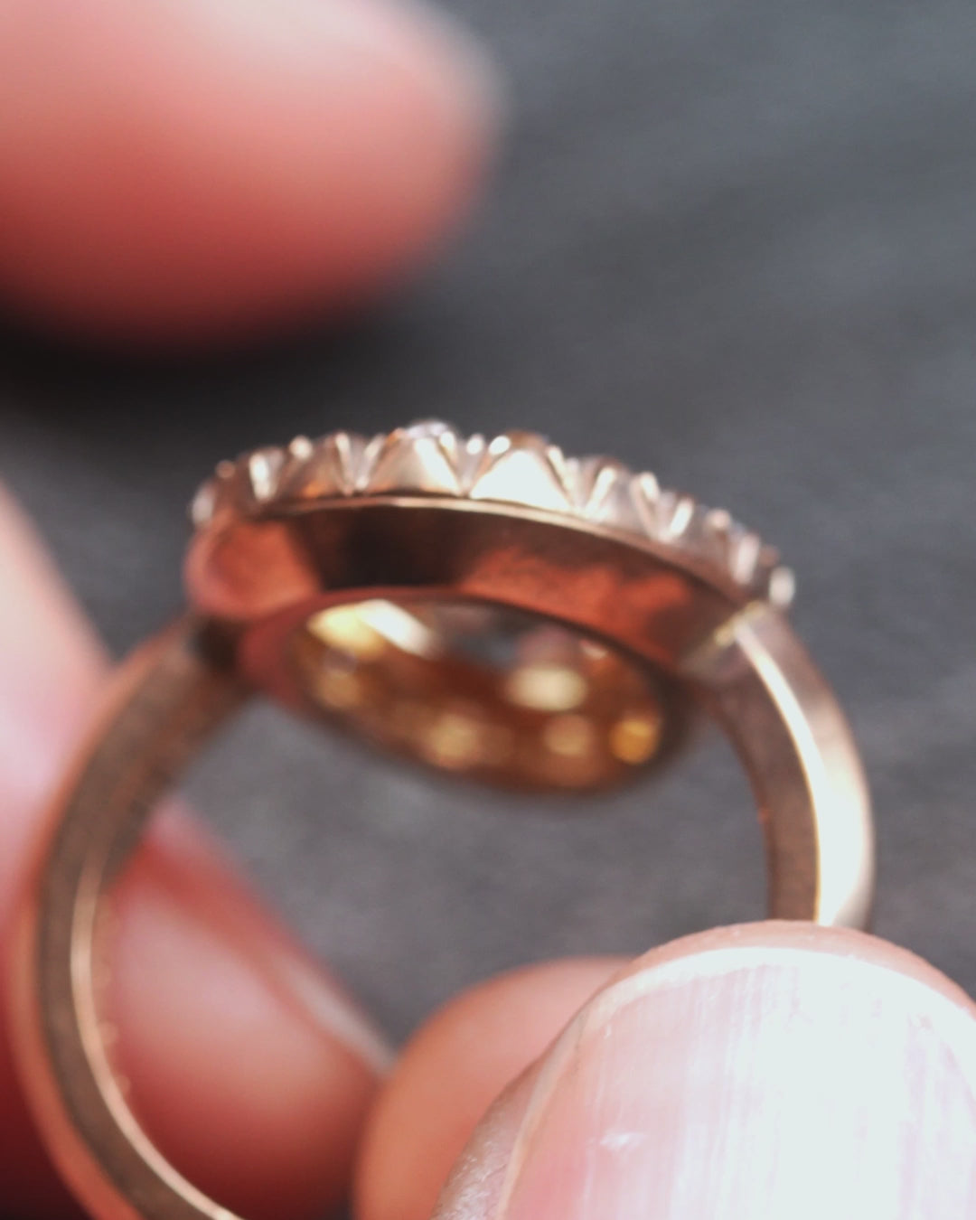 Handmade in our Texas workshop, this ring is in our custom blend of 18K rose gold. A more subdued, darker tone than commercially available rose gold. We call this color "old gold" and created the alloy in the spirit of the many 19th century rings we have handled.