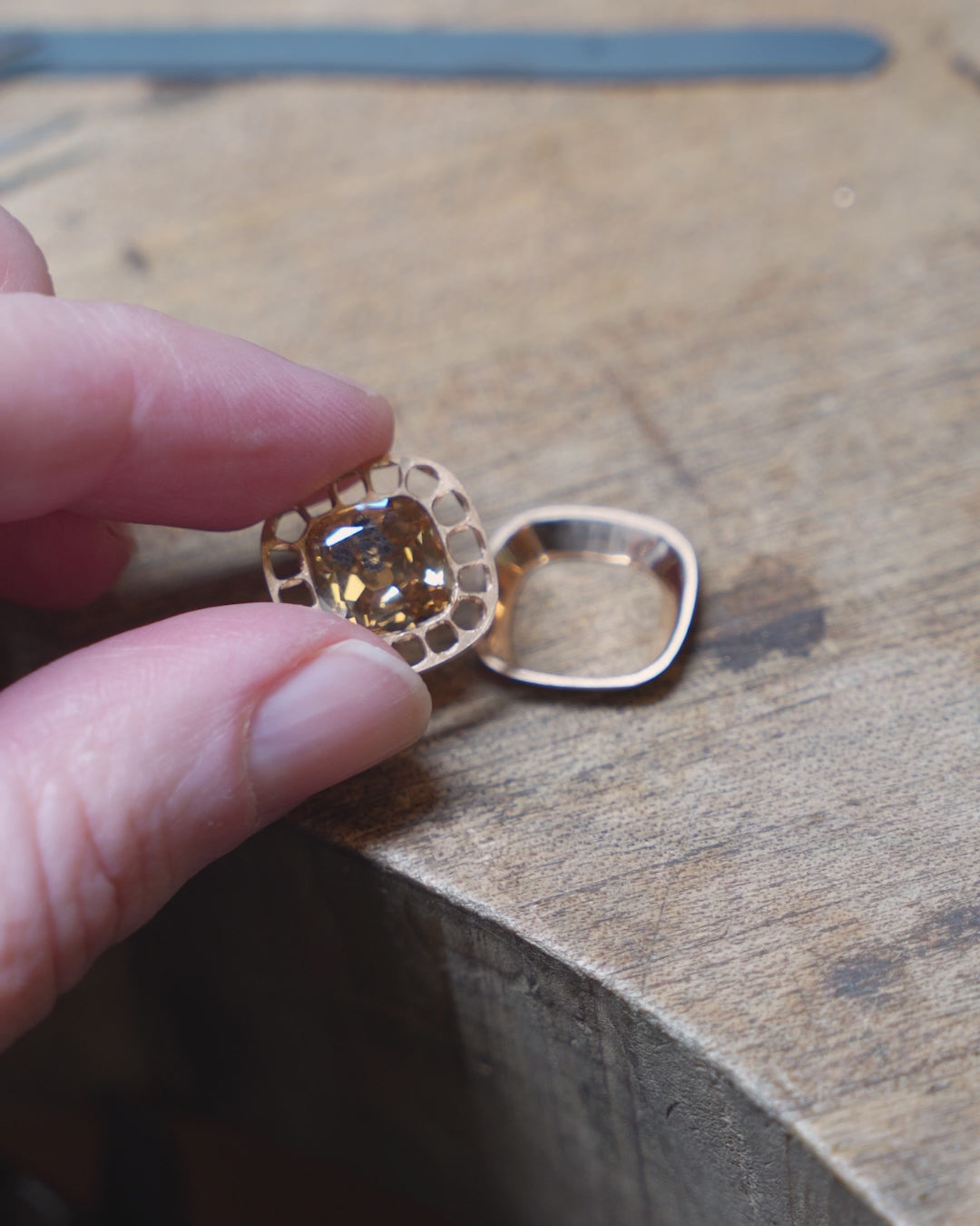 Handmade in our Texas workshop, this ring is in our custom blend of 18K rose gold. A more subdued, darker tone than commercially available rose gold. We call this color "old gold" and created the alloy in the spirit of the many 19th century rings we have handled.