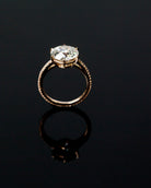 Classic six prong solitaire diamond ring on micro pavé diamond eternity band. The prongs are hand filed to delicate points. This example features a 3.88 carat Old European cut diamond.