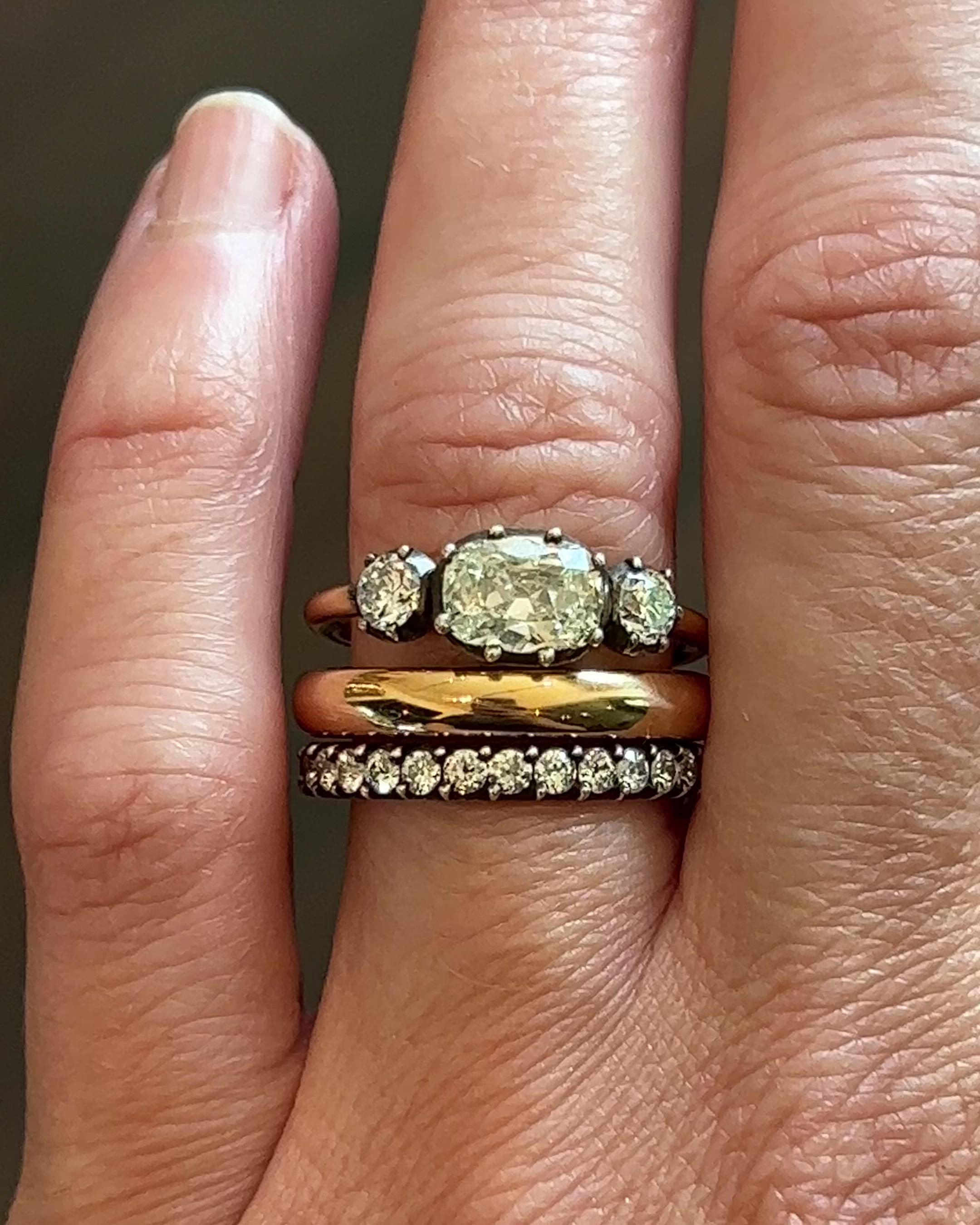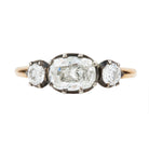 Bell & Bird Cutaway Silver on Gold Three Stone Diamond Ring