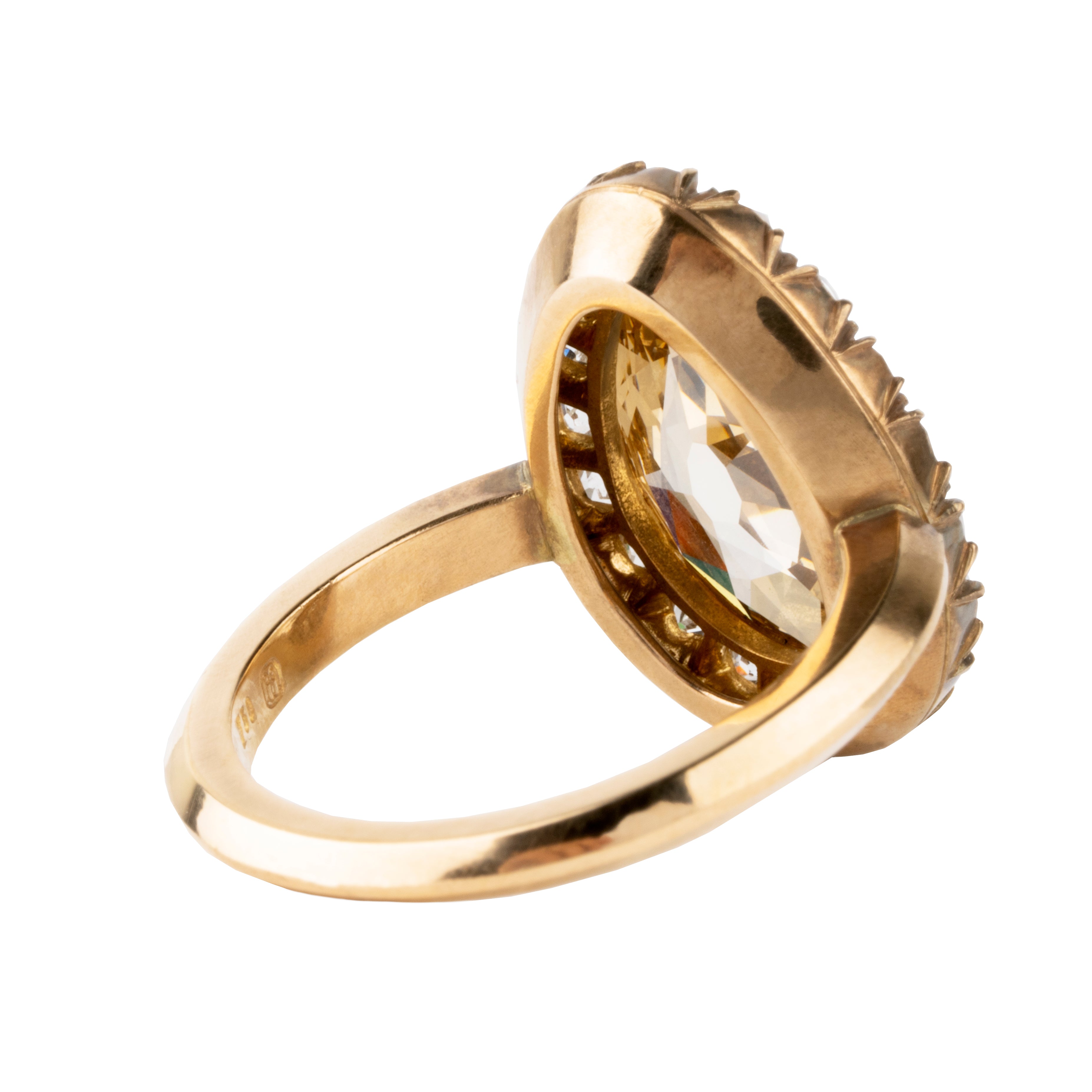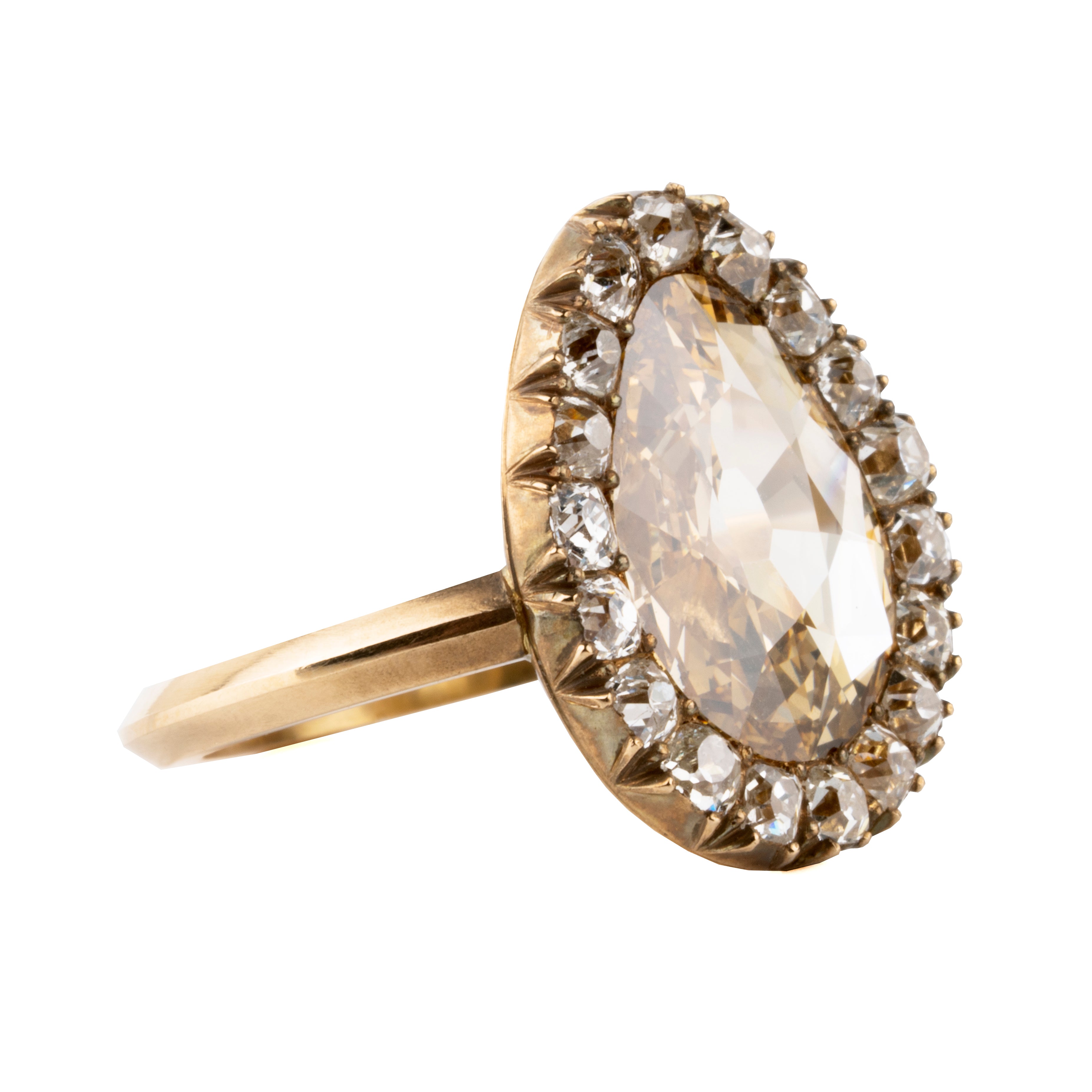 This design is inspired by a labor-intensive setting technique common in 18th and 19th century rings. The silver-on-gold technique is true to the rings that inspired this design and are rarely seen in modern jewelry.