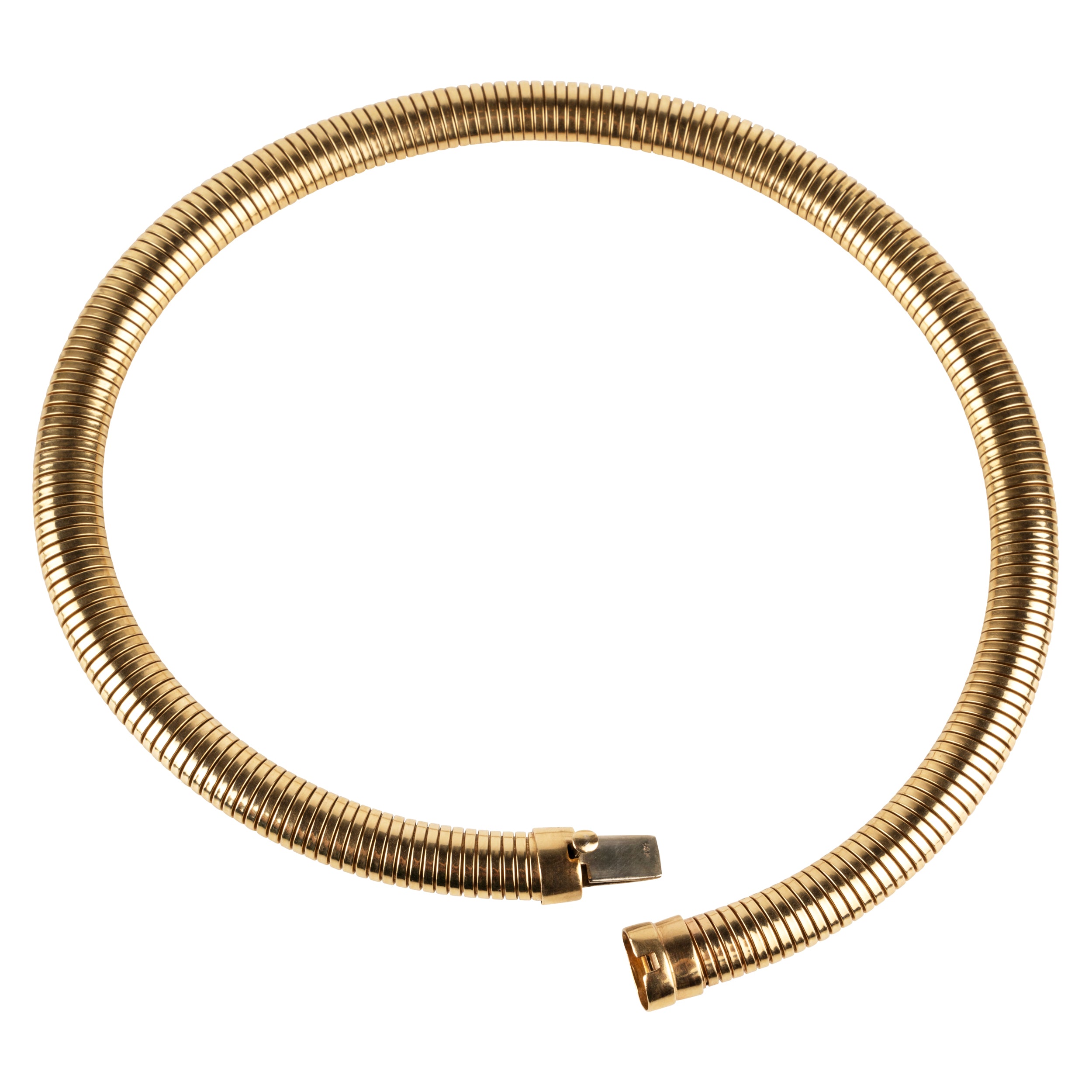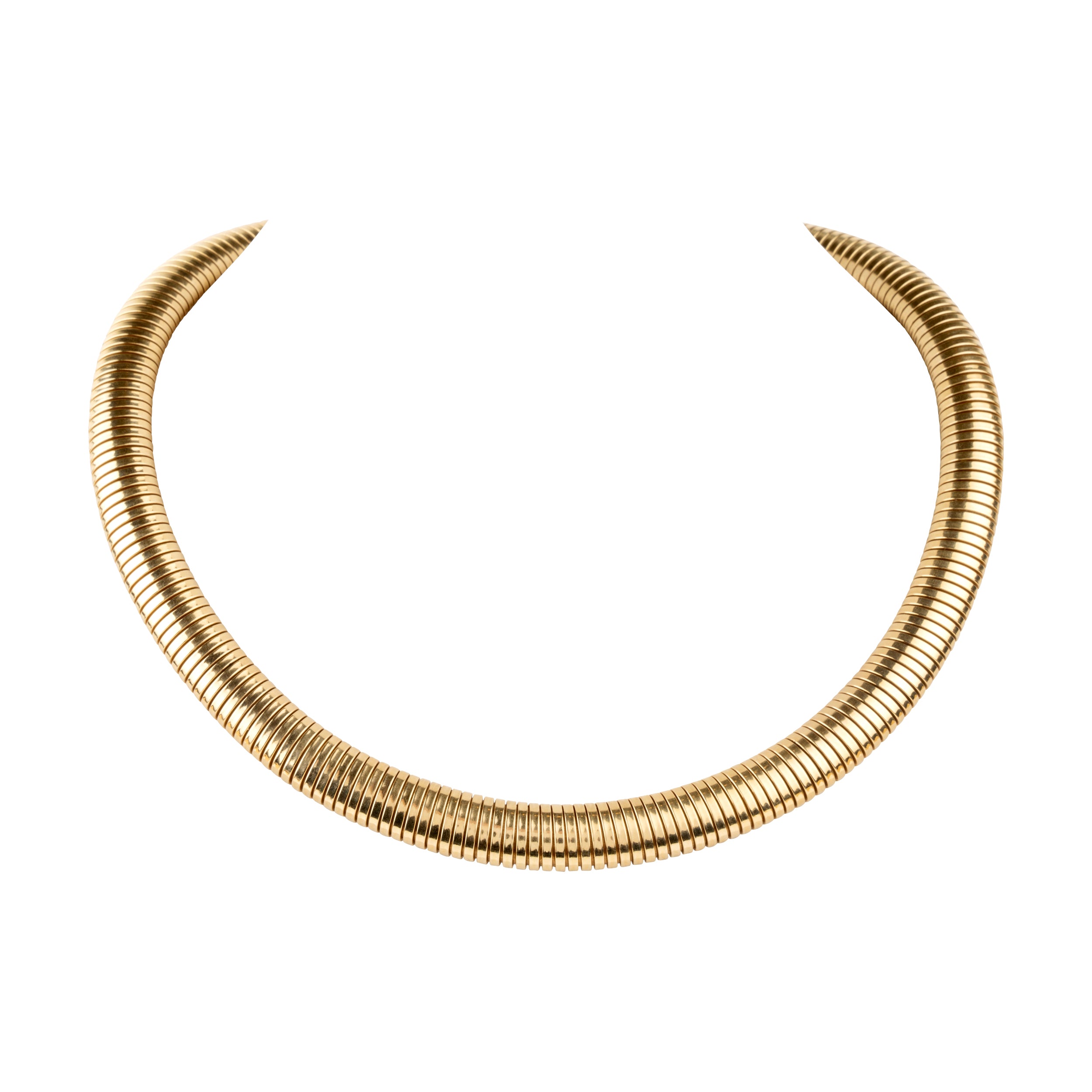 We also carry a captivating collection of retro gold collars, including retro bold gold collar necklaces from the 1940s and 1950s—a period known for its daring, sculptural designs and Hollywood-inspired flair. These vintage collars are true showstoppers, often crafted in rose or yellow gold and designed to sit elegantly at the collarbone. Their bold and confident aesthetic makes them a favorite among vintage jewelry lovers who crave drama and sophistication.