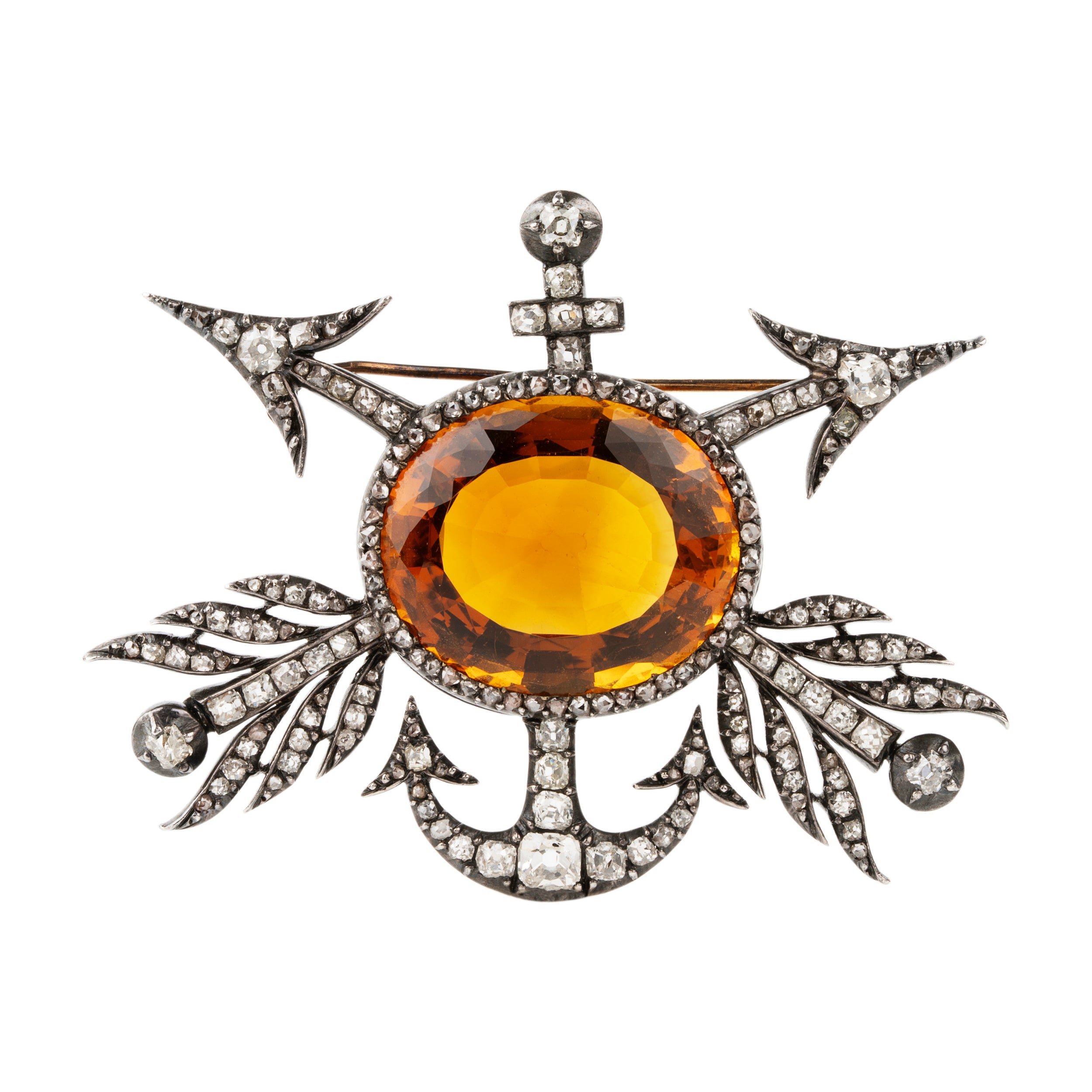 19th Century Citrine and Diamond Anchor and Arrow Brooch