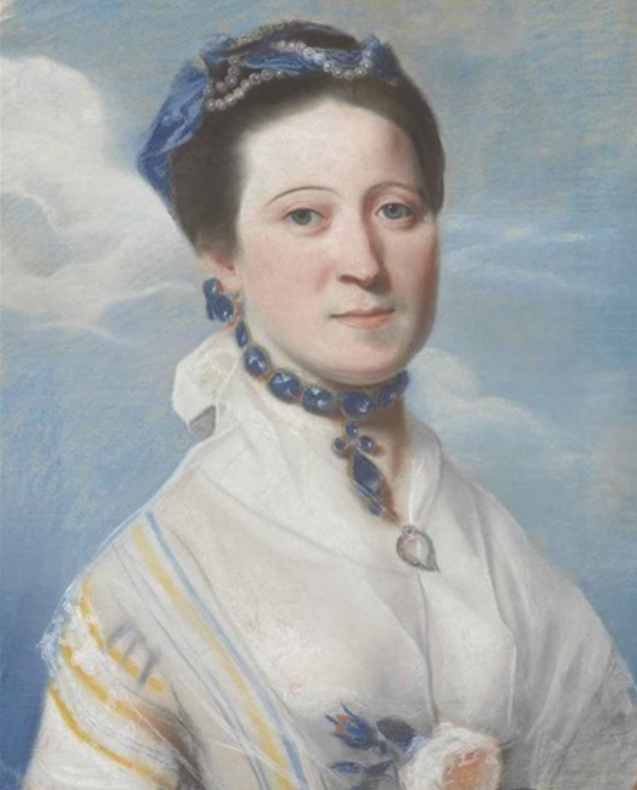 An example of a pair of Queen Anne earrings being worn: Mrs. George Turner, ca. 1767, by John Singleton Copley, American, 1737–1815