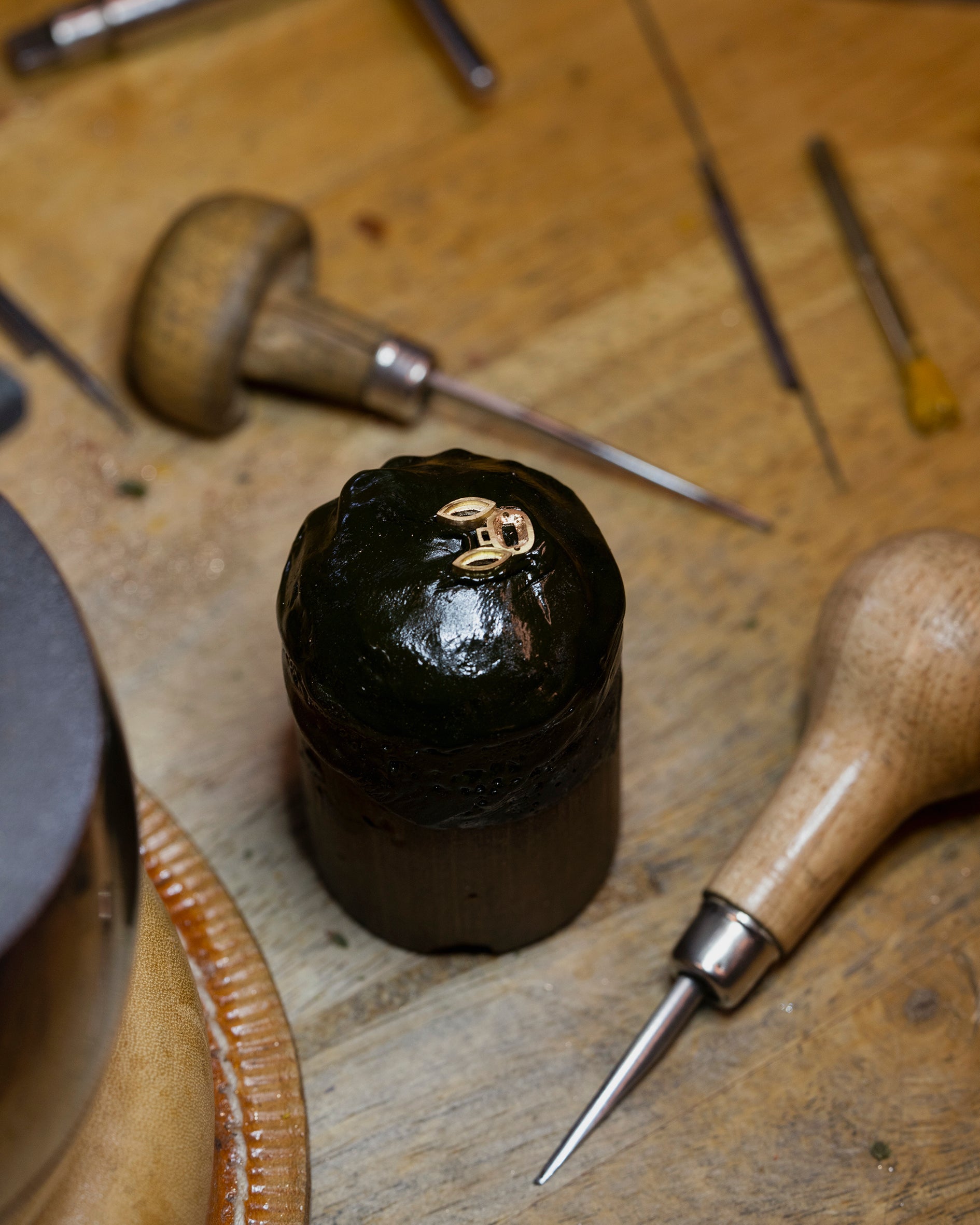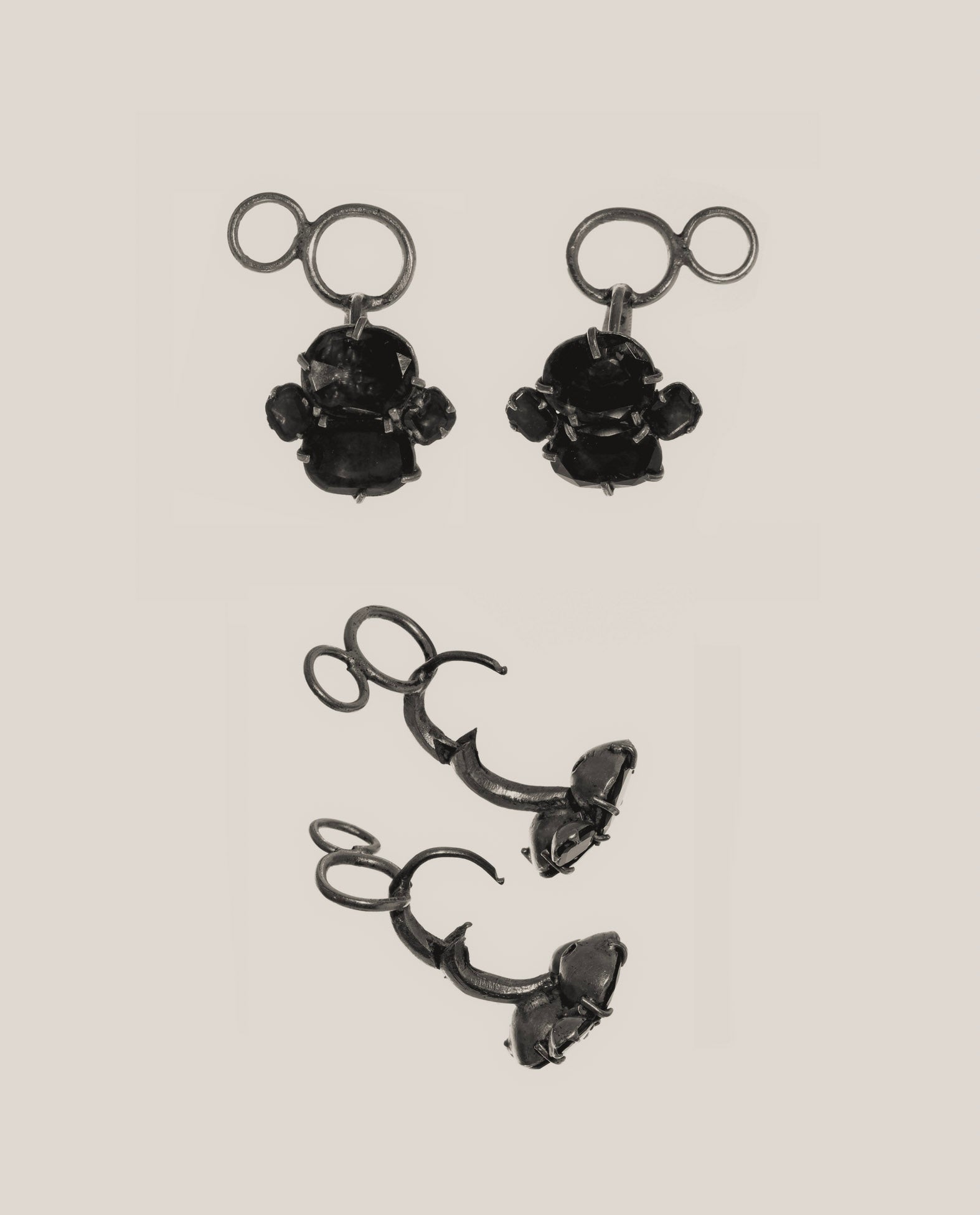 Our design for these earrings is inspired by Georgian 'back-to-front' earring settings. Entirely hand-fabricated, they feature 18k old gold cutaway collet settings. Set in our 18k "old" gold. Designed with our custom "latch backs" to sit perfectly against your ear.