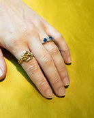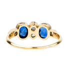 Sapphire and diamond ring paired with a Victorian gold eternal love knot ring.