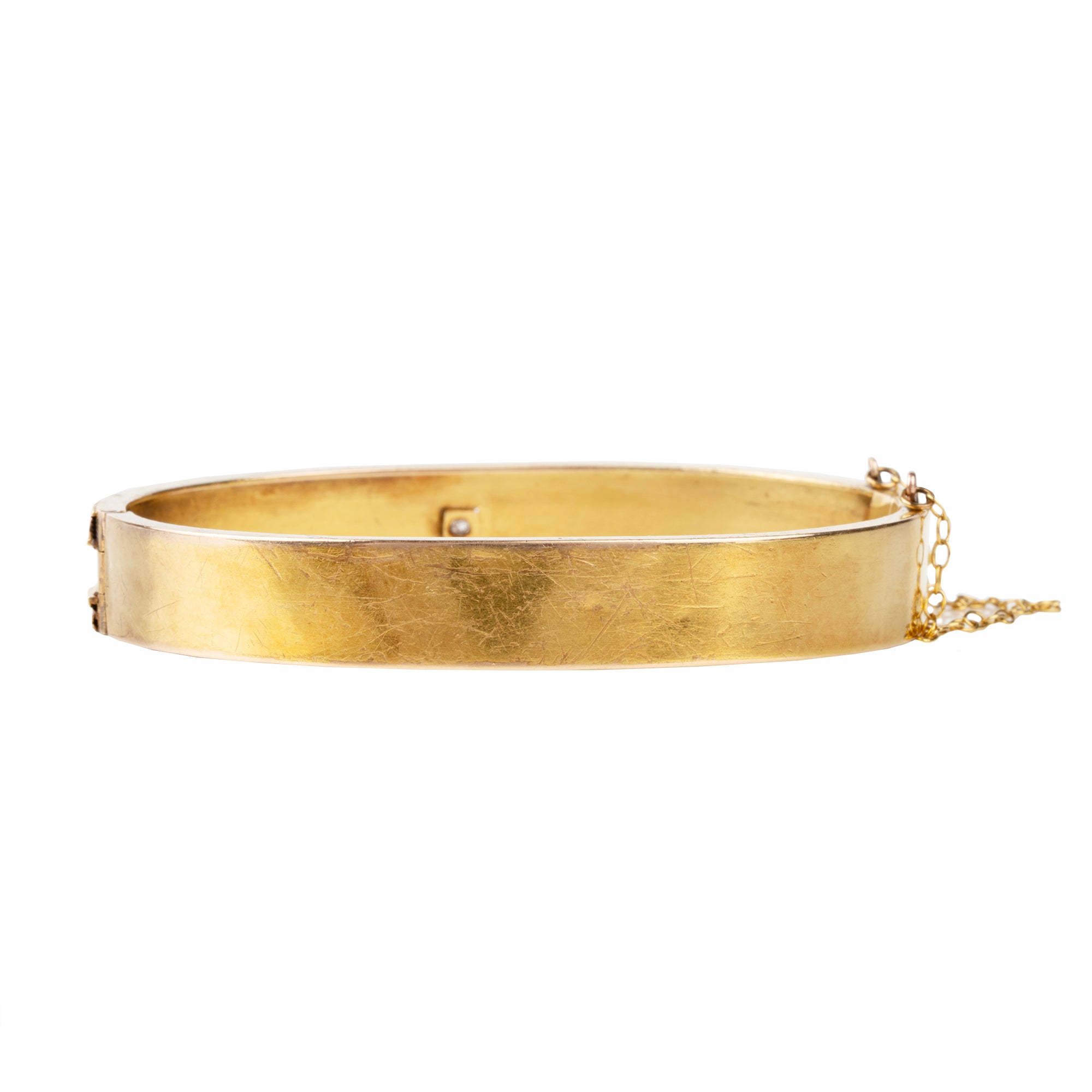 Single old mine-cut diamond bangle bracelet, in 15k gold. Classic and simple design with a chain link border detail. There are some imperfections on the back of the bangle that are not noticeable when worn. See photos. Some areas have a darker patina, consistent with a 150-year-old natural patina.