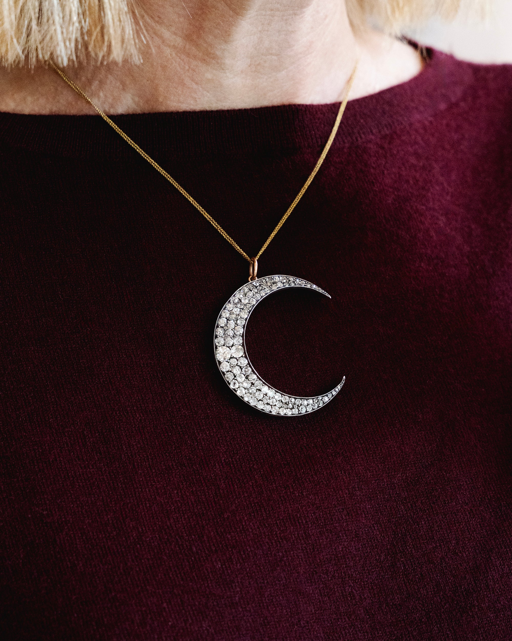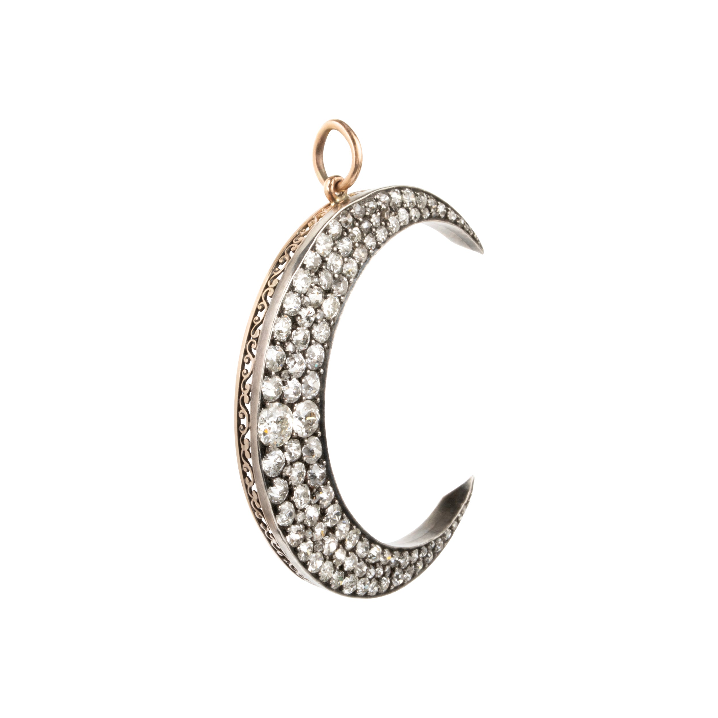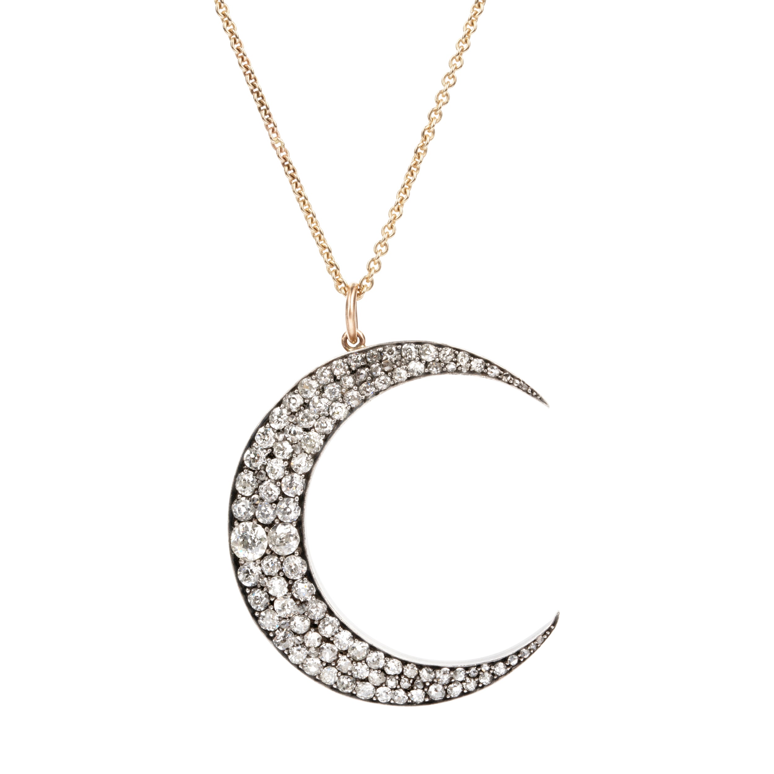 Victorian Era Old Mine Cut Diamond Crescent Moon Pendant