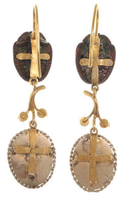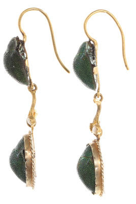 Victorian scarab earrings made during the Naturalism Movement in the mid 19th century. Circa 1870's.