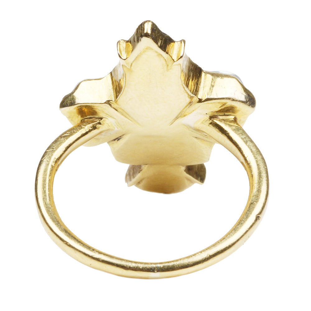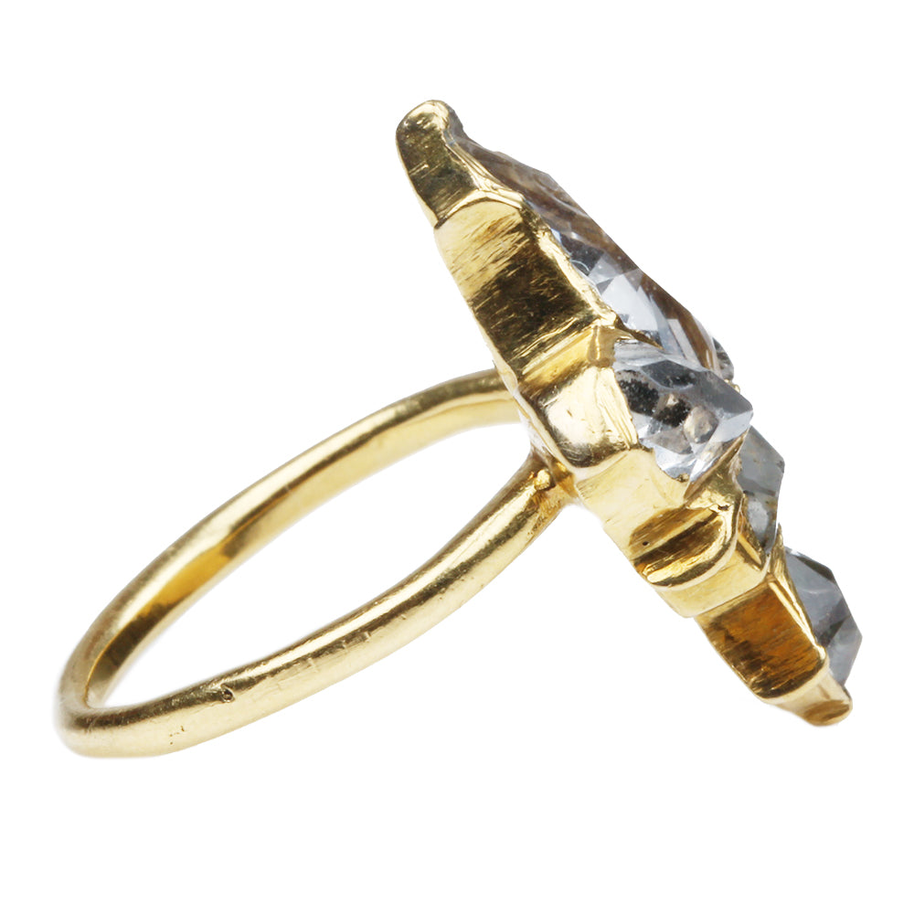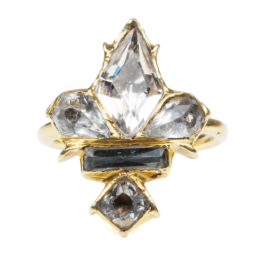 18th century Spanish fleur de lis ring. Rock crystal set in closed back high carat gold setting. Spanish in Origin. Early to mid 17th Century.