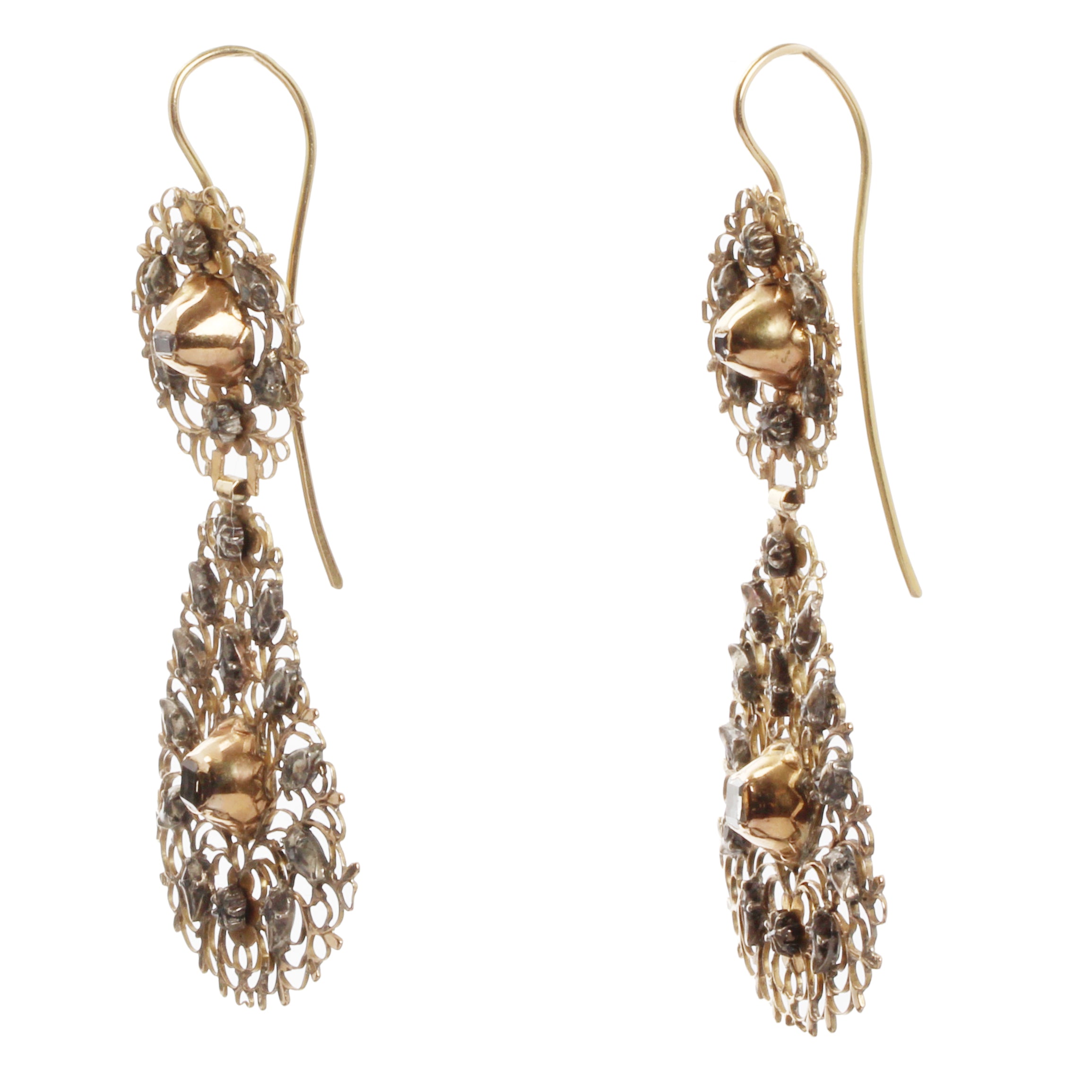 18th Century Filigree Table Cut Diamond Earrings