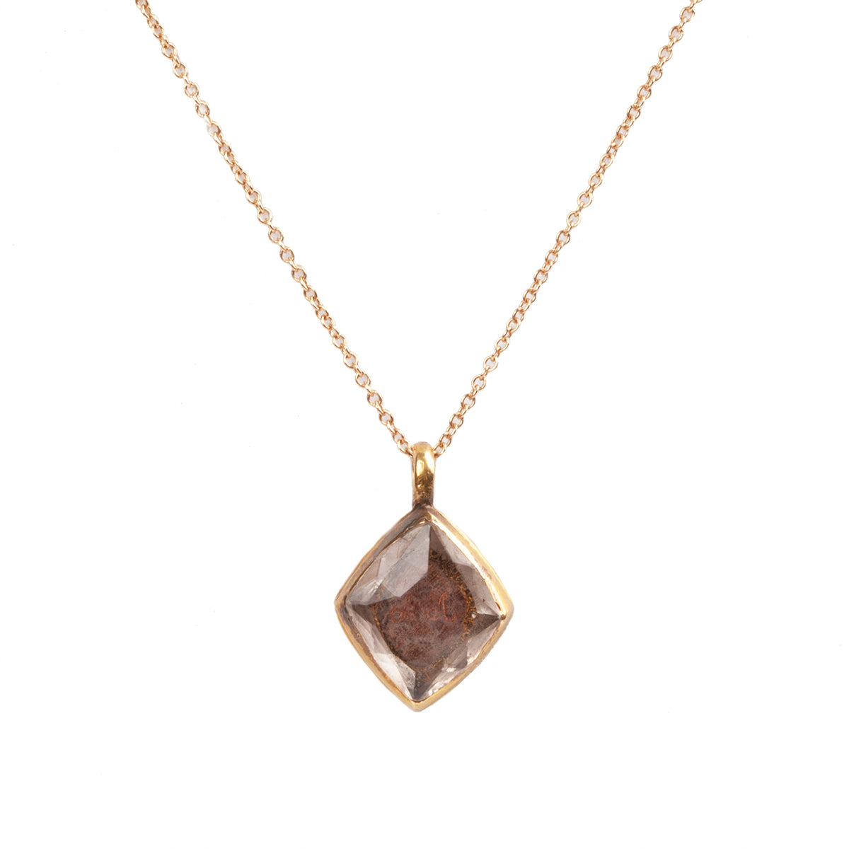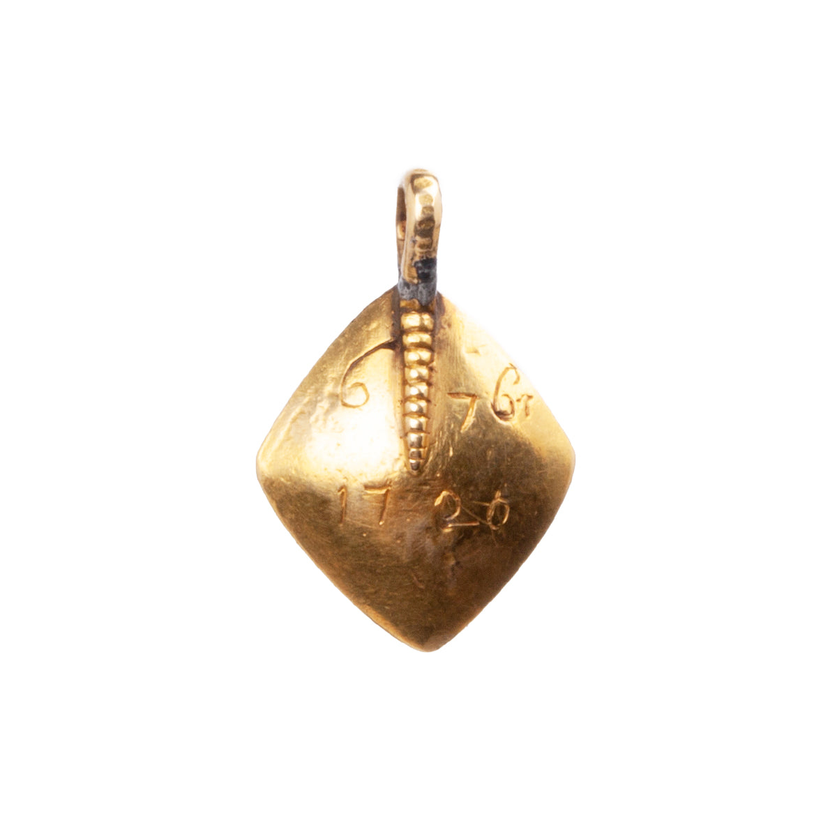 Measures .75" in drop length. The pendant hangs on a Victorian 18k gold chain, which is sold separately. Please email us at info@bellandbird.com for chain options.