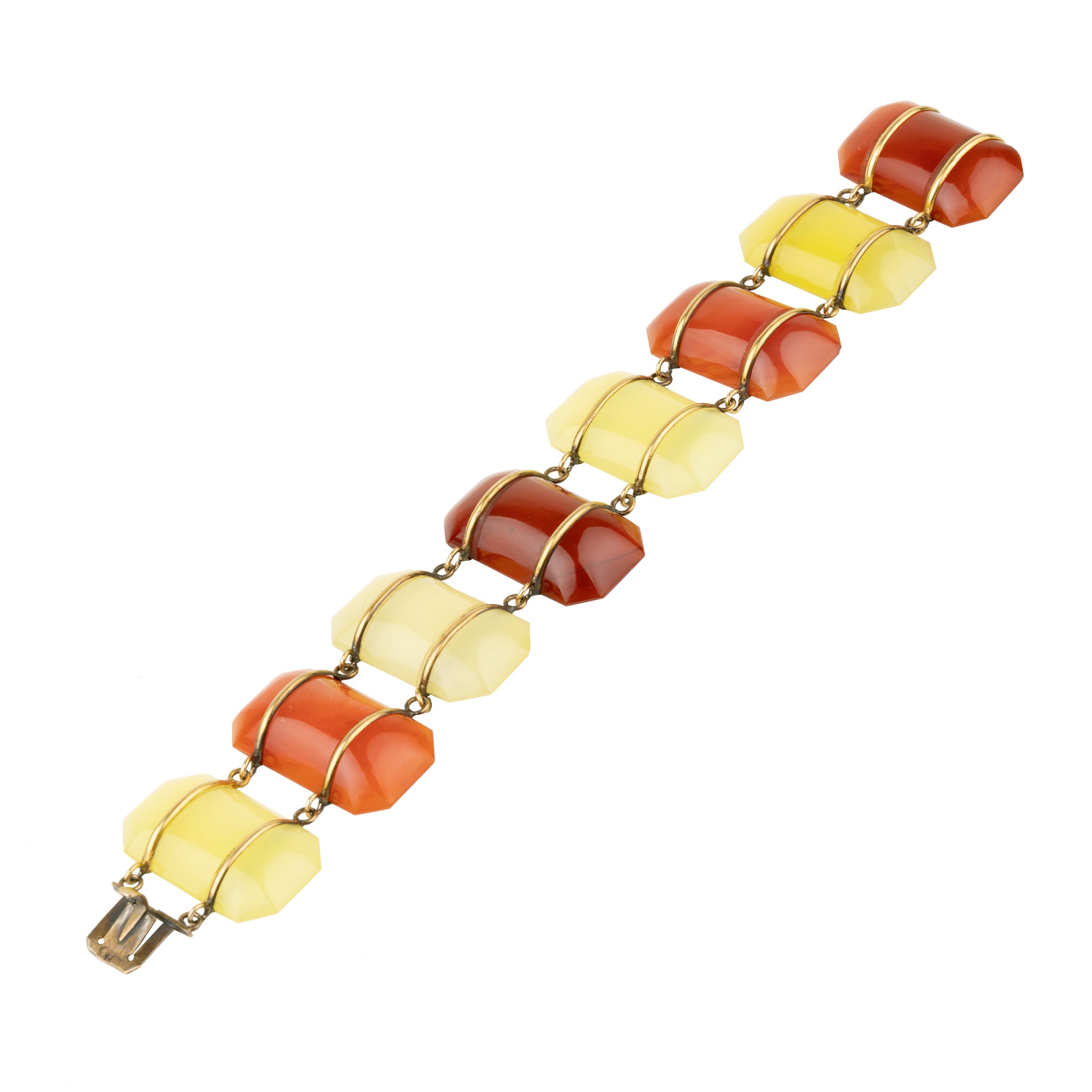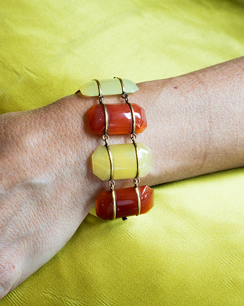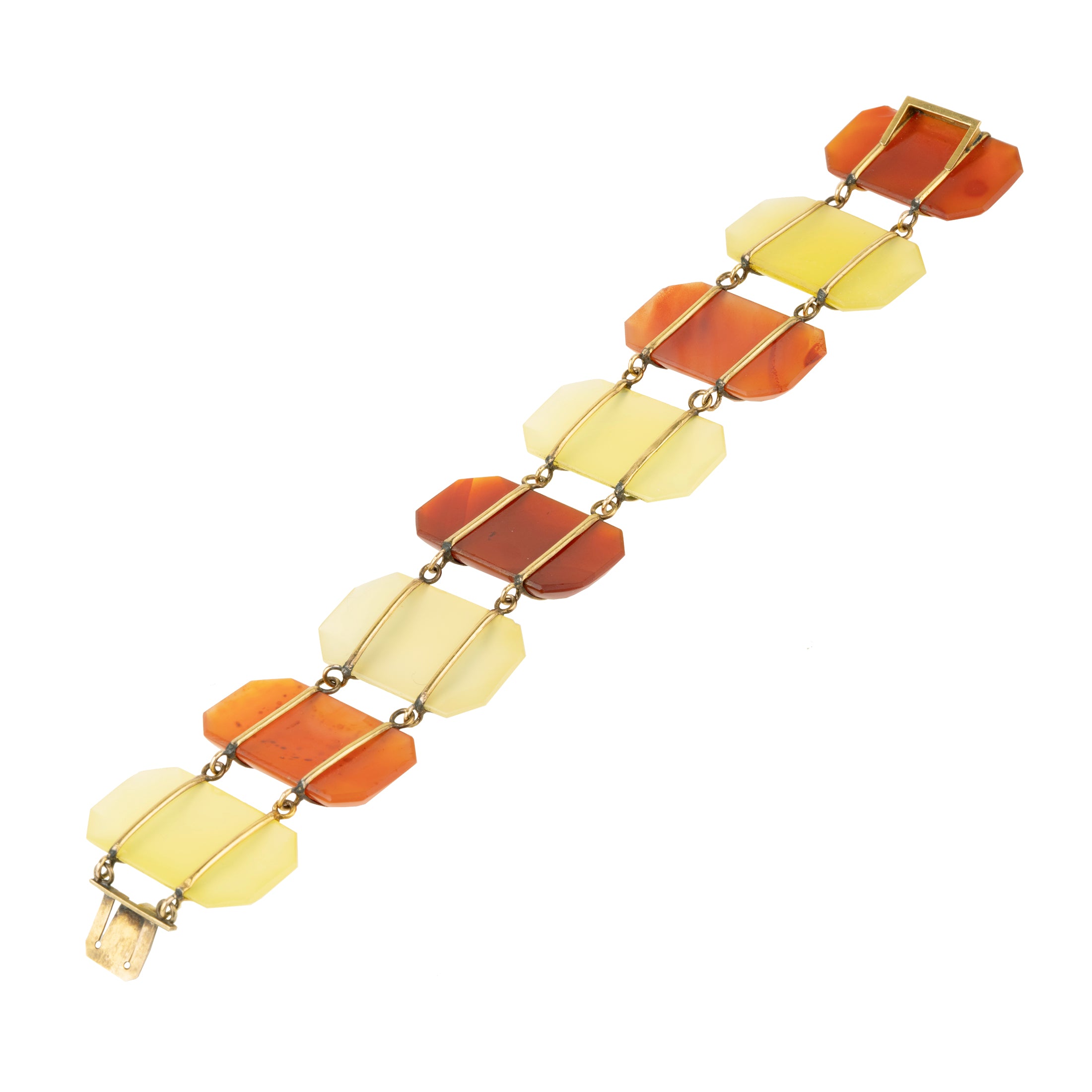 19th Century agate specimen bracelet, in 14k gold. unusual orange and lemon colored stones. Imperial Russian marks. Circa1870.