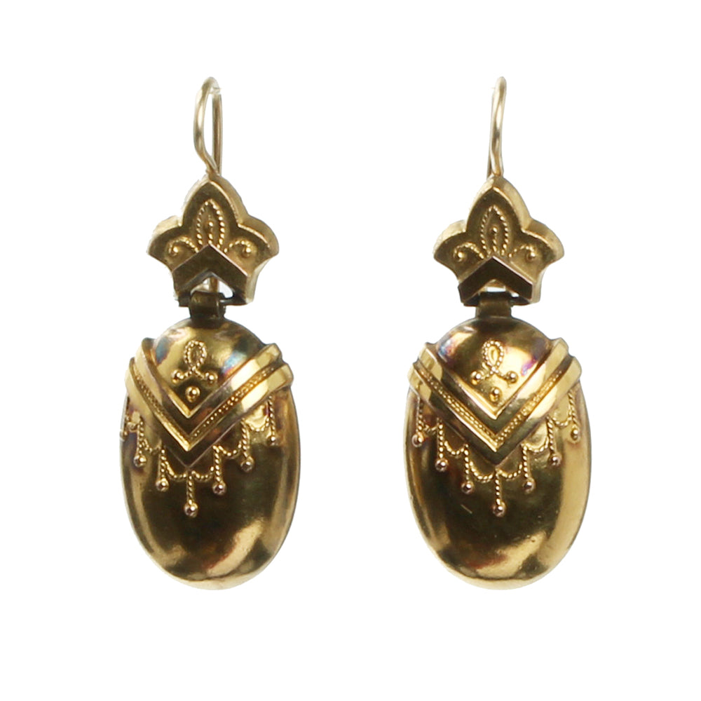 19th Century drop earrings, in 14kt gold. Light weight and perfect for everyday wear. American in origin. Circa 1880.