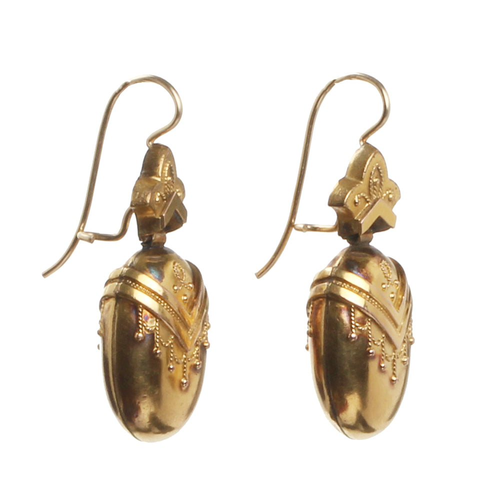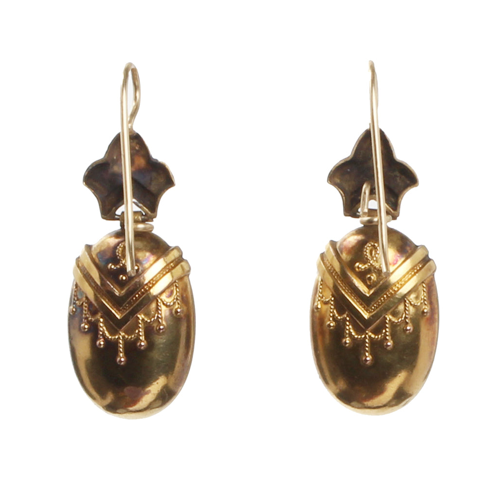 19th century gold earrings, in 14k gold. American in origin. Circa 1880.