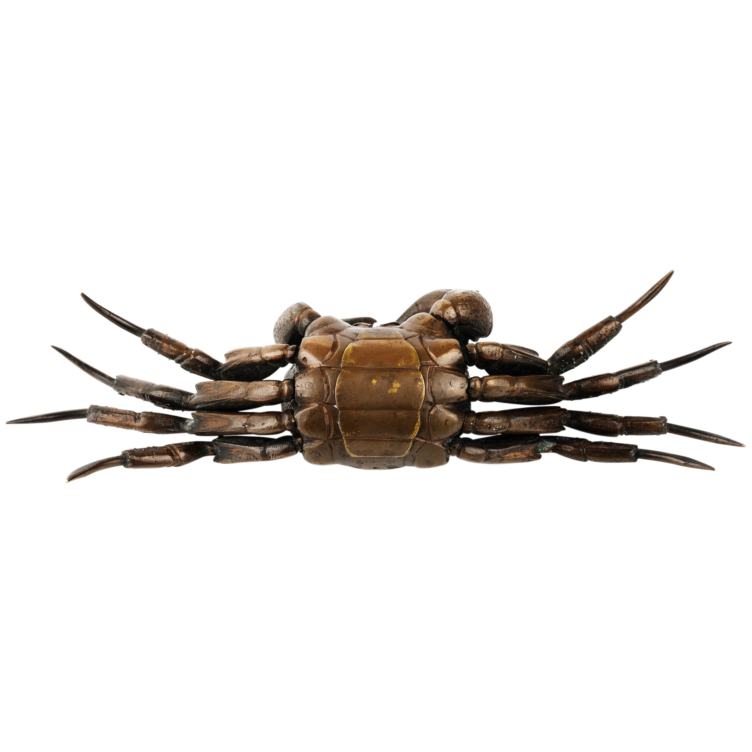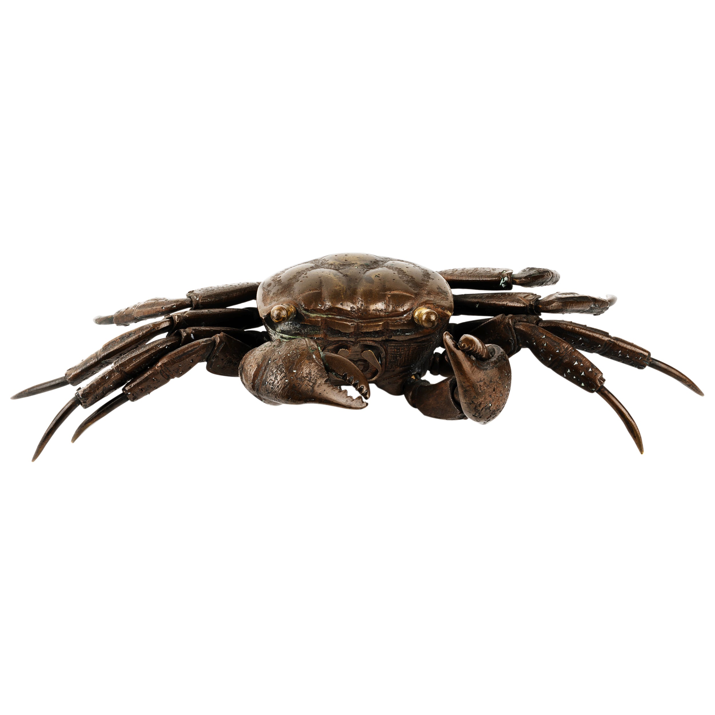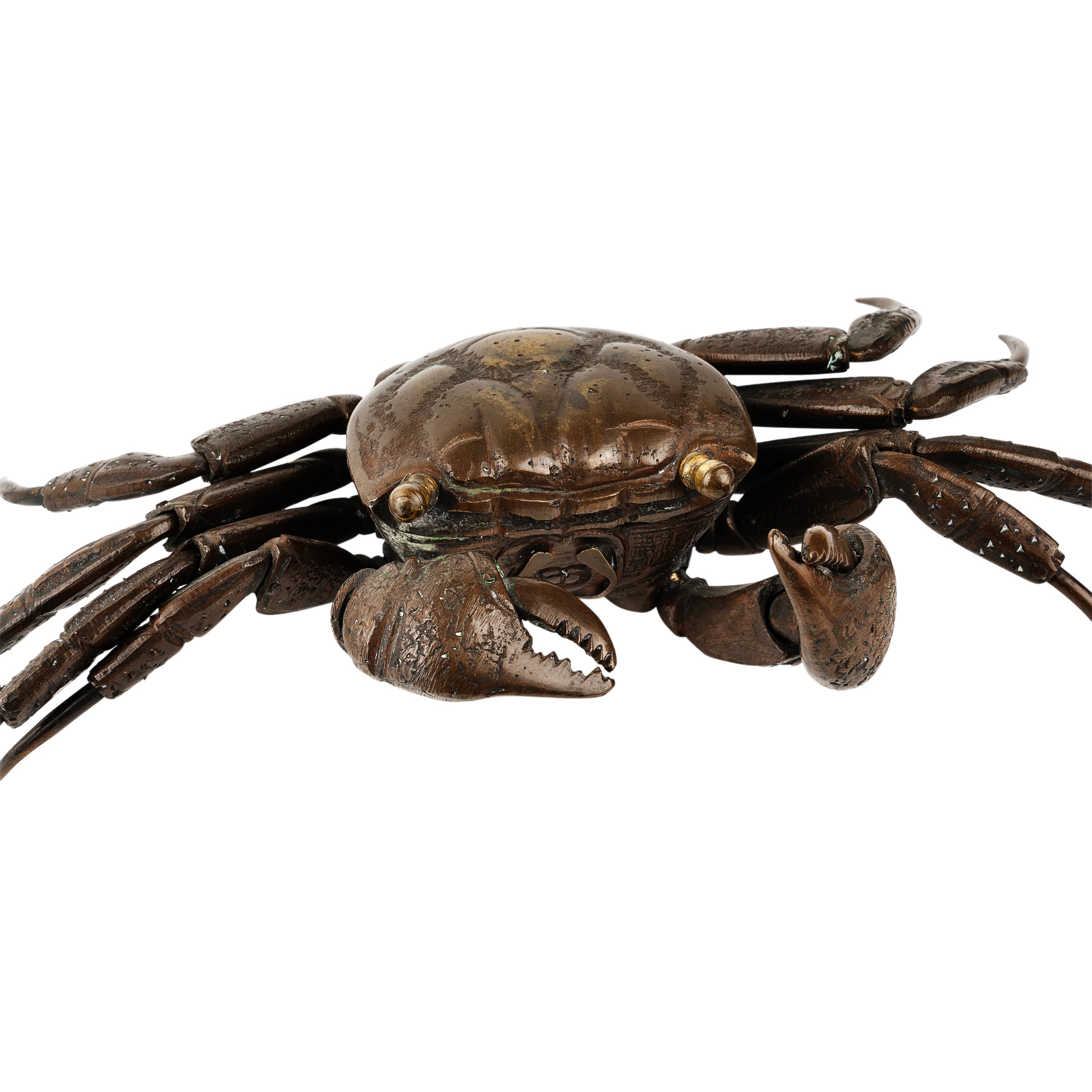 A 19th-century Japanese Meiji-period articulated bronze crab. Each joint is articulated, allowing a natural movement of each leg and claw.