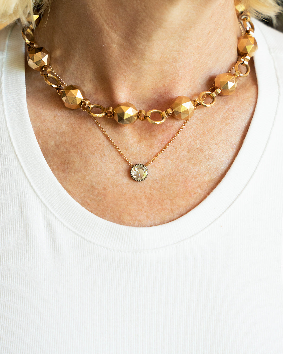 19th Century Old Mine Cut Diamond Solitaire Pendant Necklace