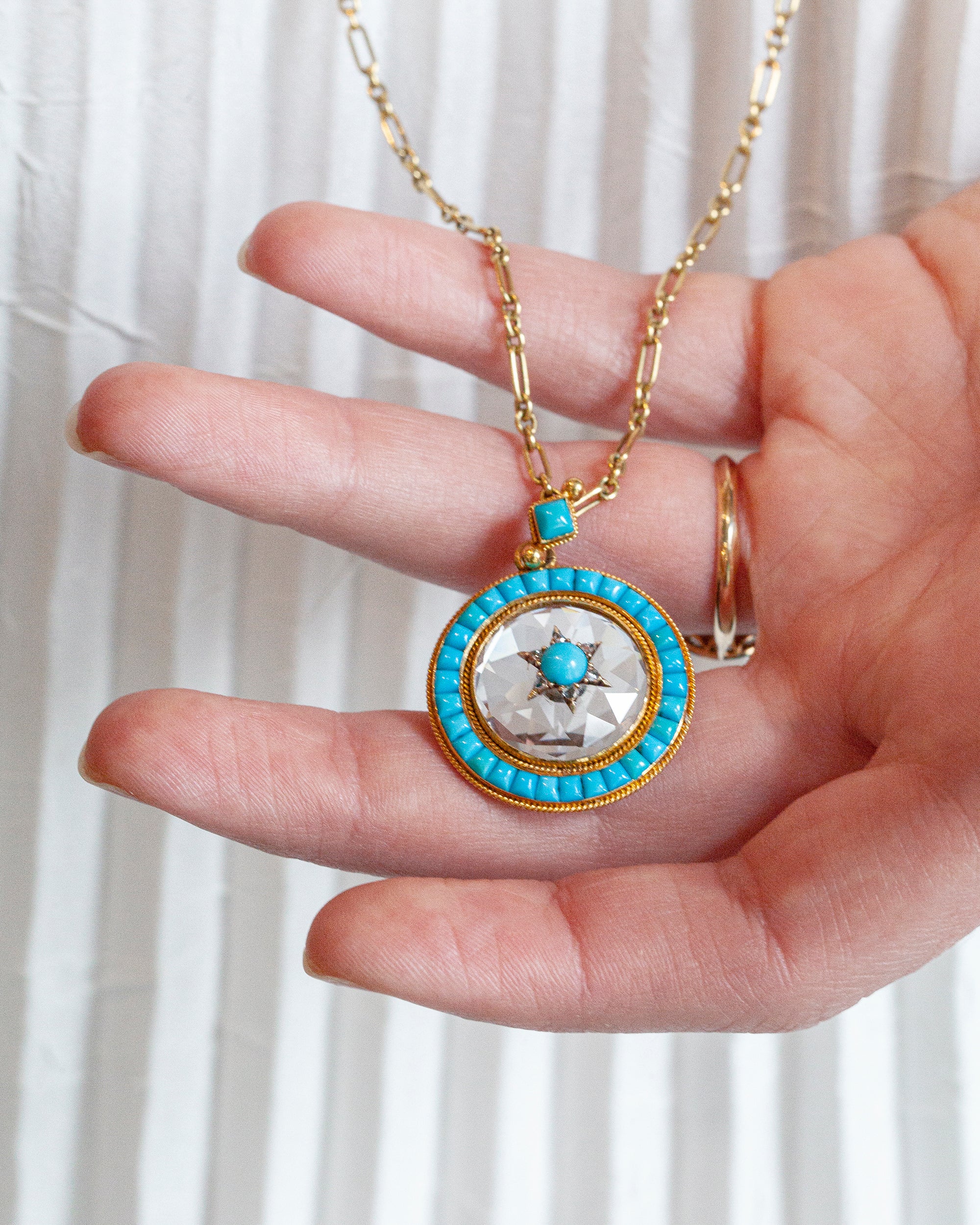 19th century rock crystal, turquoise and diamond Locket