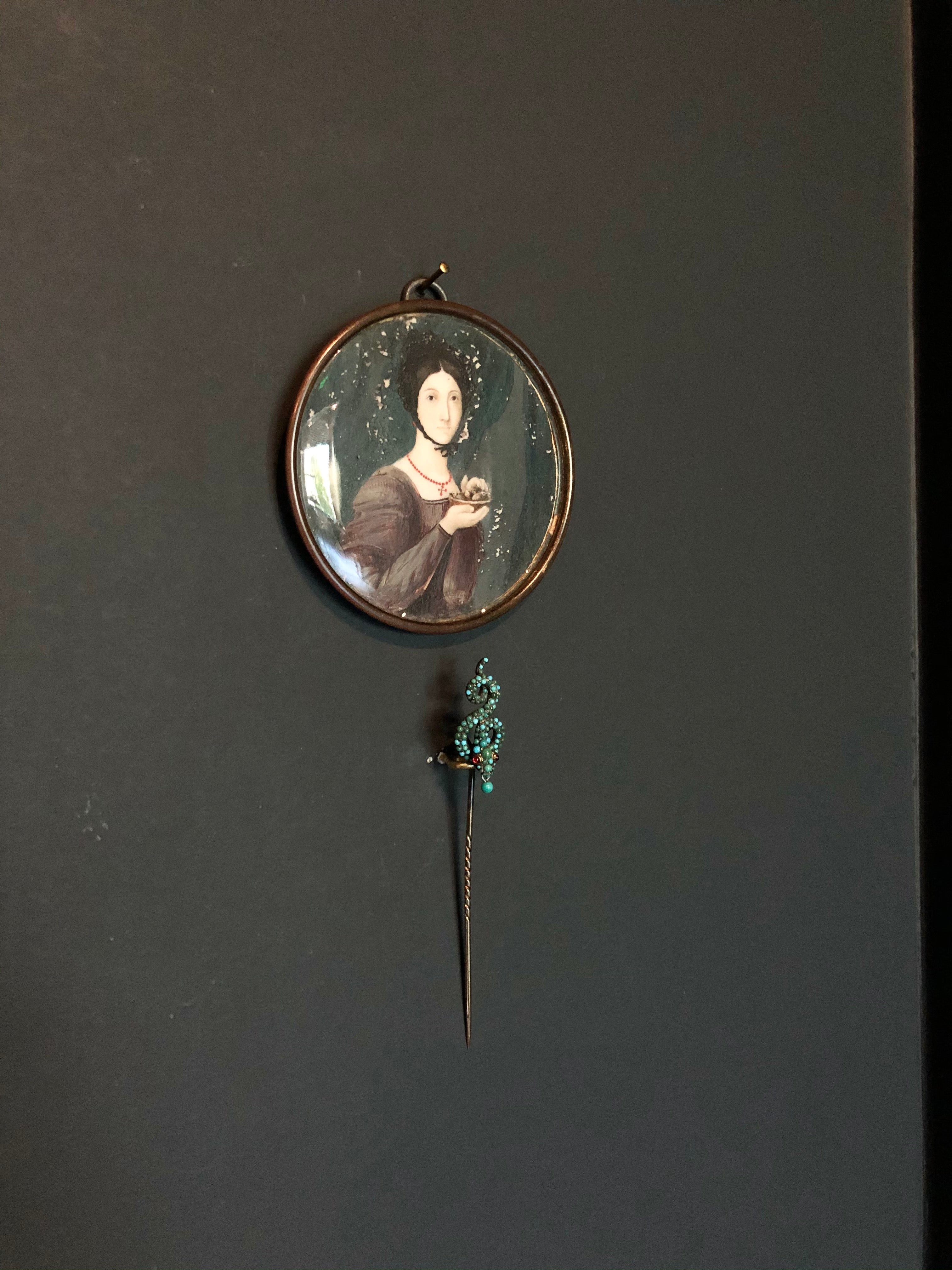 19th Century Turquoise Snake Pin