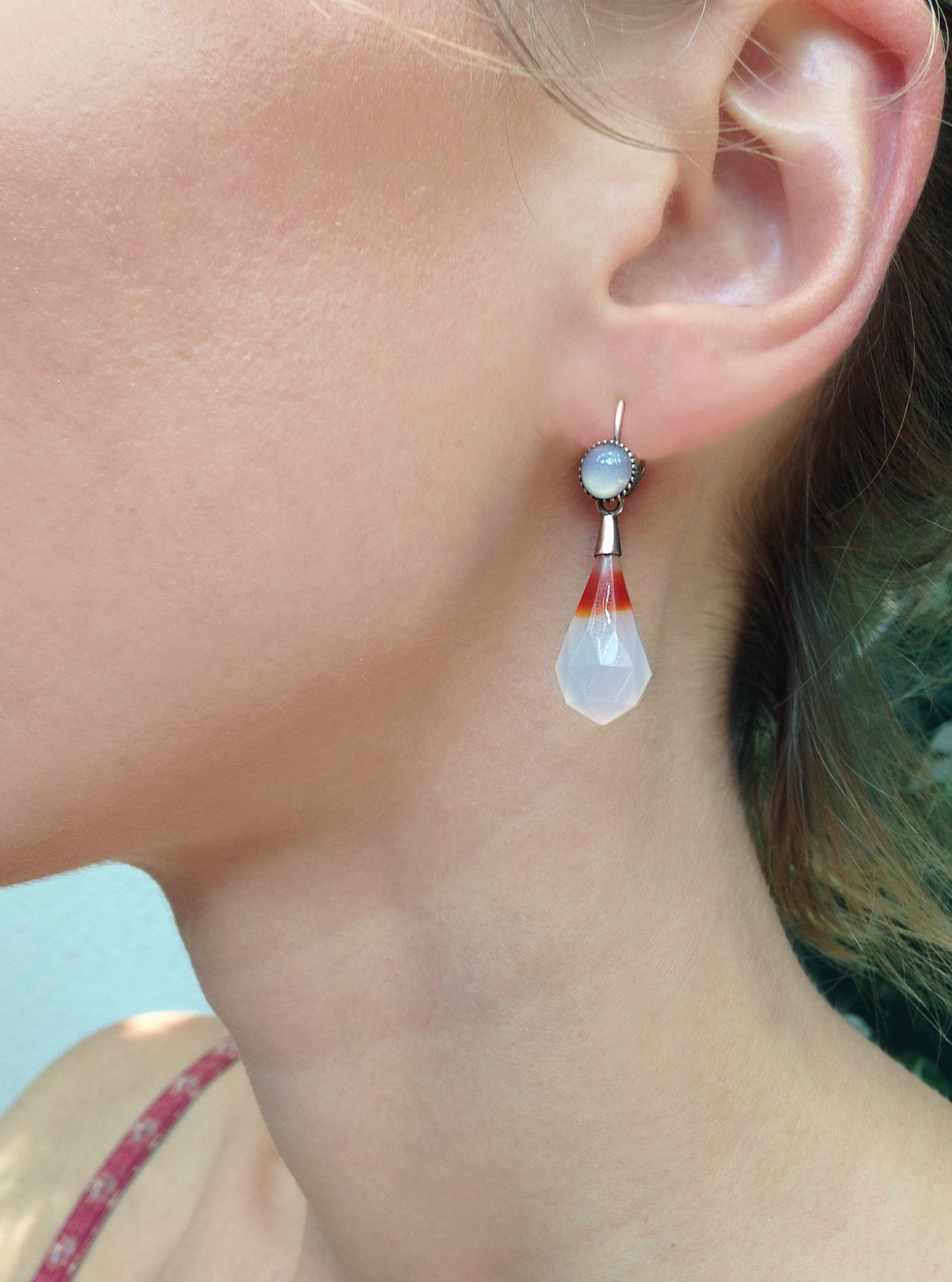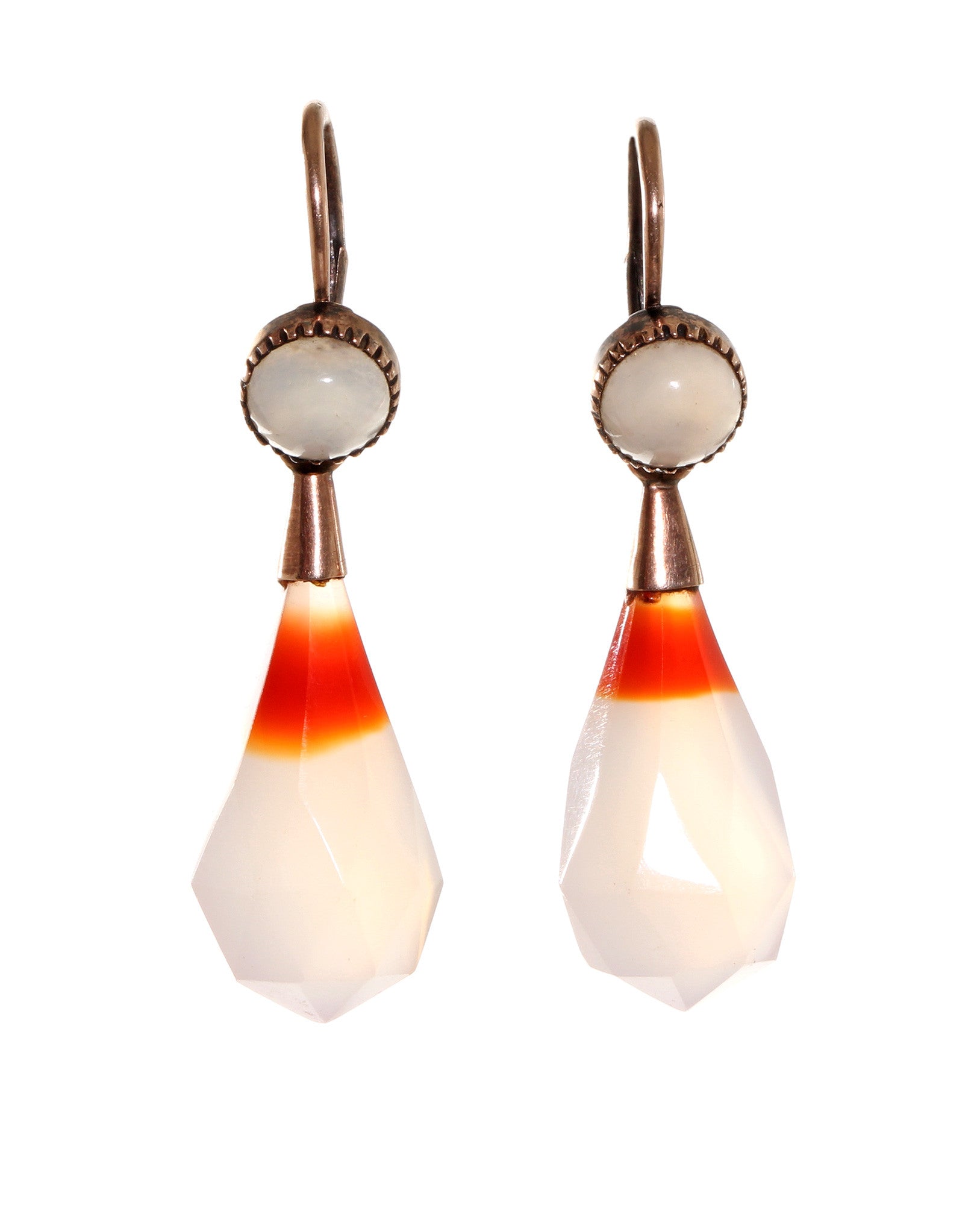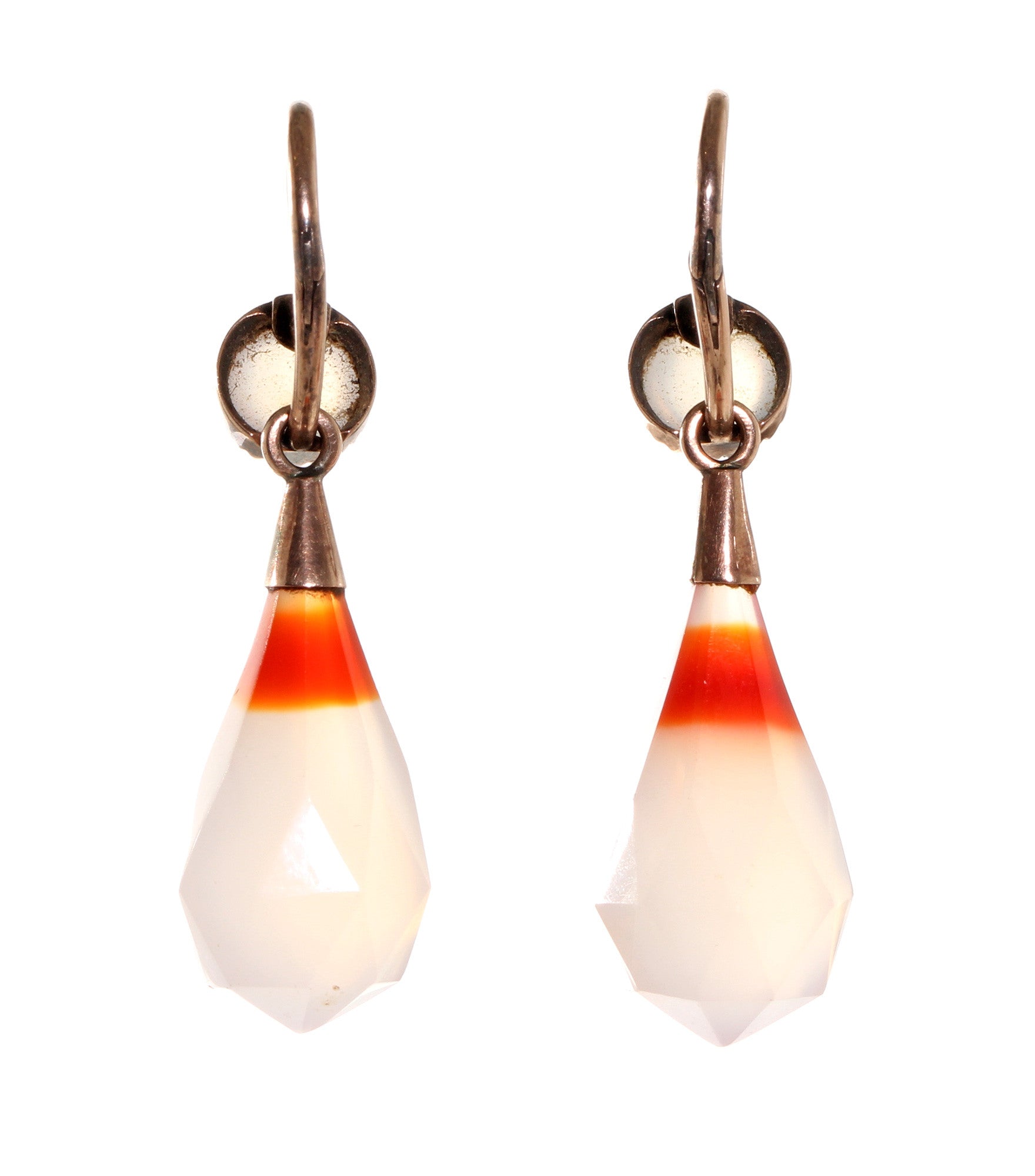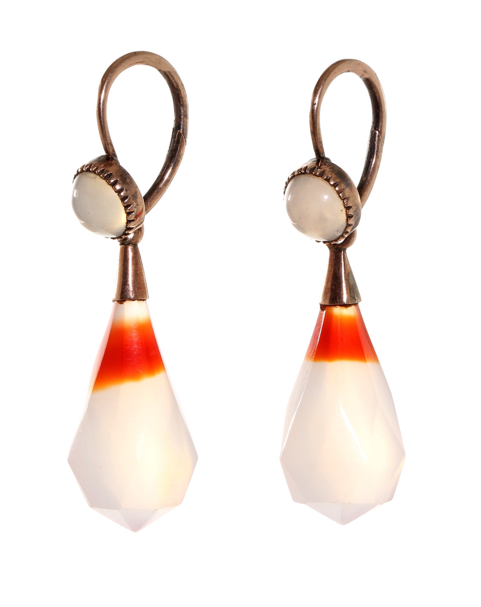 Early Victorian Banded Chalcedony Agate Day & Night Earrings